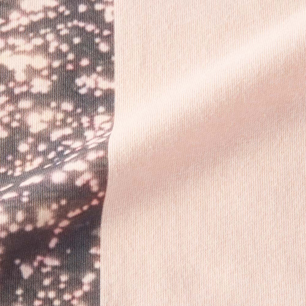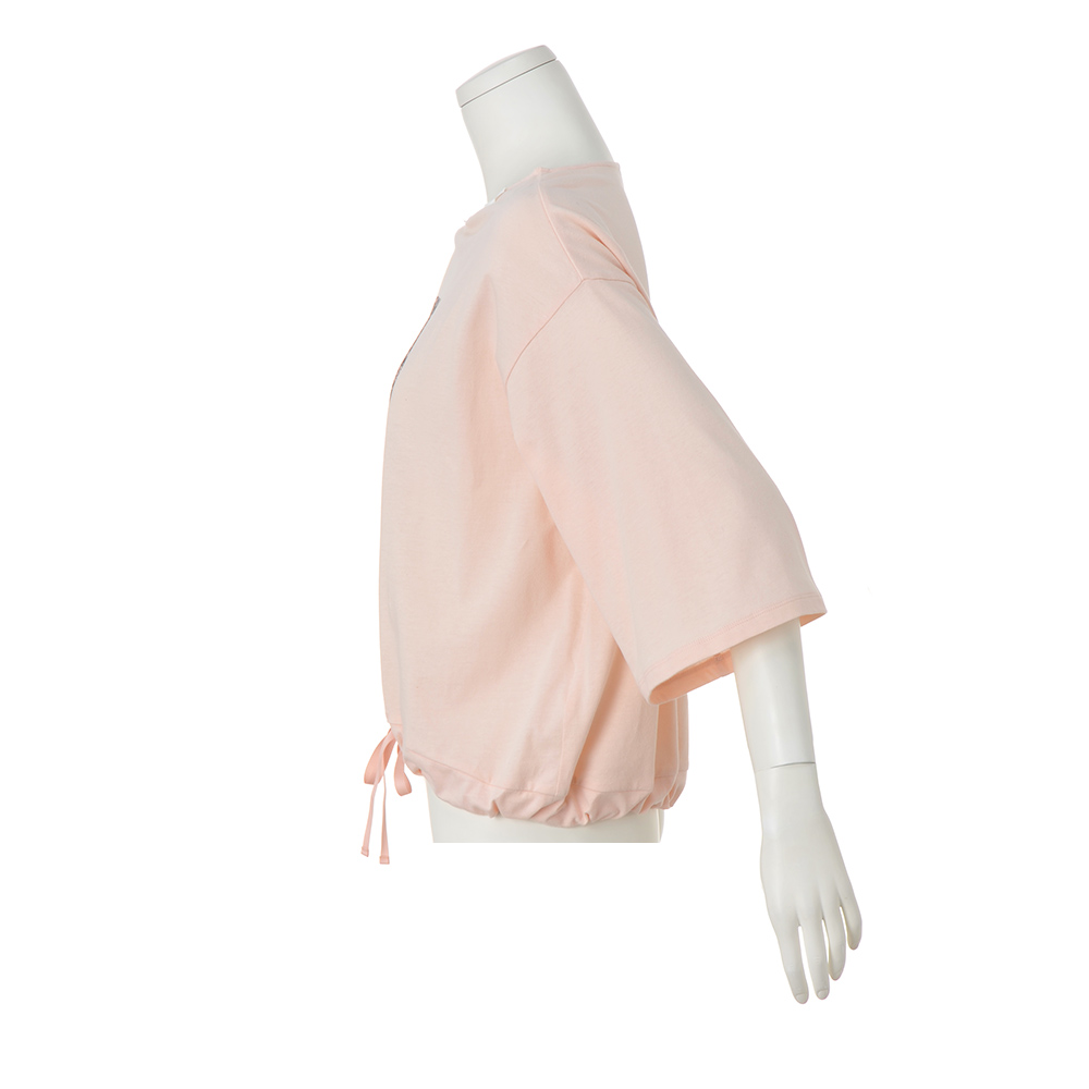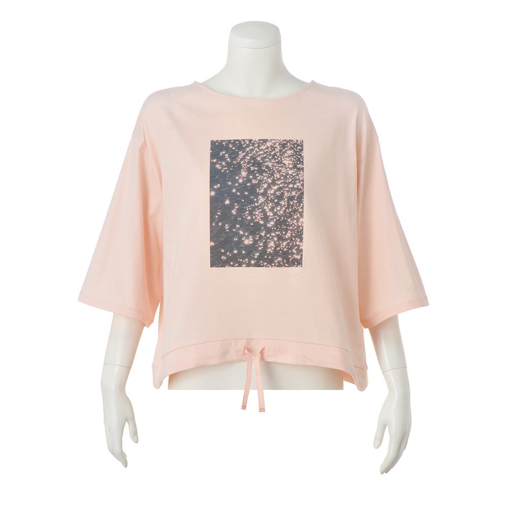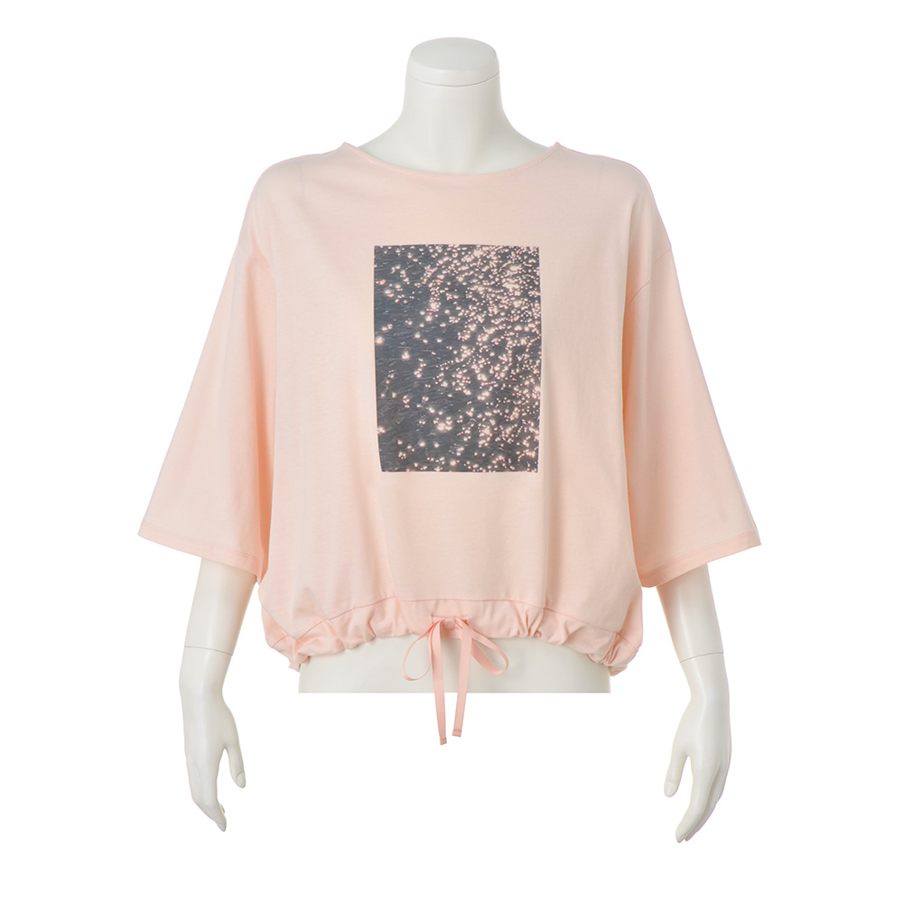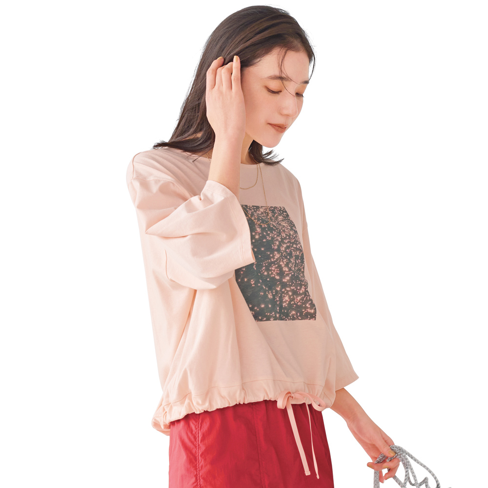 カジュアルを、もっとサステナブルに素敵と思える服が、結果的に地球にやさしい。So Close,が提案するサステナブルファッションは我慢しないおしゃれ。あなたのが選んだ“好き”が、未来の一歩につながりますように。捨てられてしまうはずの素材から色を抽出する「モッタイダイ」シリーズ。こちらは桜の花びらで染め、さらにオーガニックコットン100%という、ダブルでサステナブルなフォトTシャツ。プリントは、水面に反射する桜の光を思わせる洒落感あるデザイン。裾はドローストリング仕様で、リボンで絞ればインしたように見え、外せばストンと落ちるこなれたストレートシルエットに。*SUSTAINABLE(アップサイクル)*