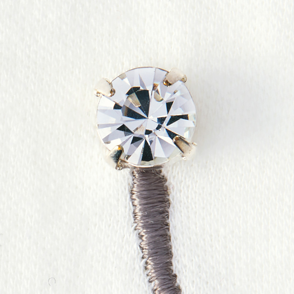 ロゴは高級感があるビジューつき。品がよくて女性らしい印象に。
