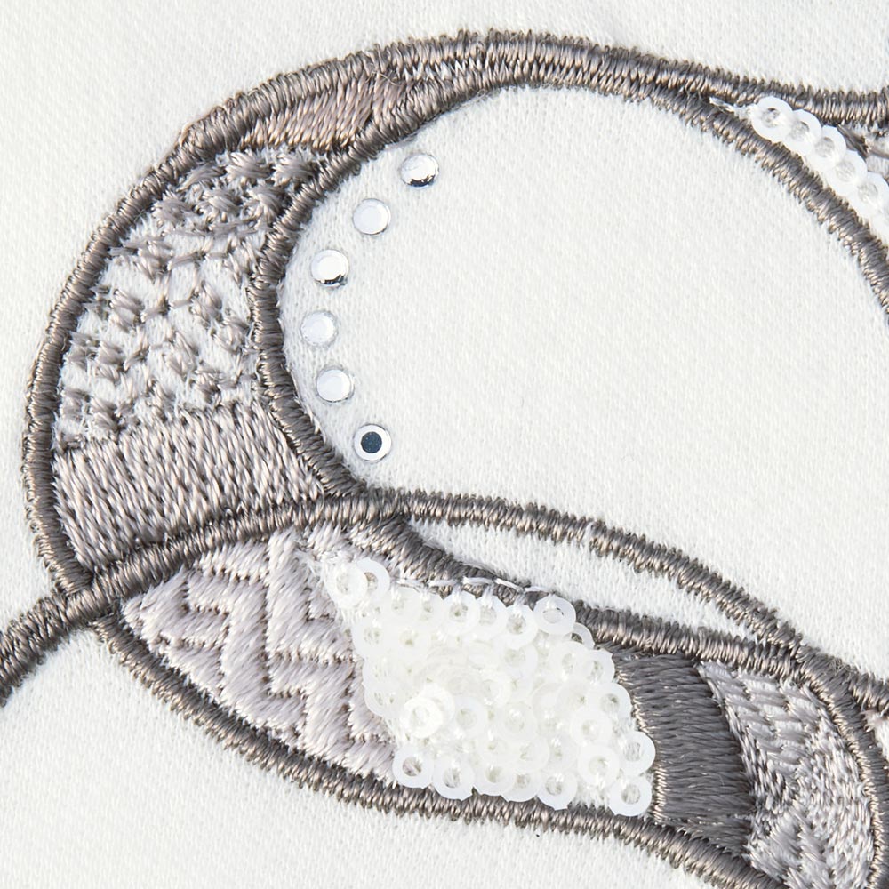 右胸のロゴは繊細な刺しゅう&スパンコール・ラメで表現。