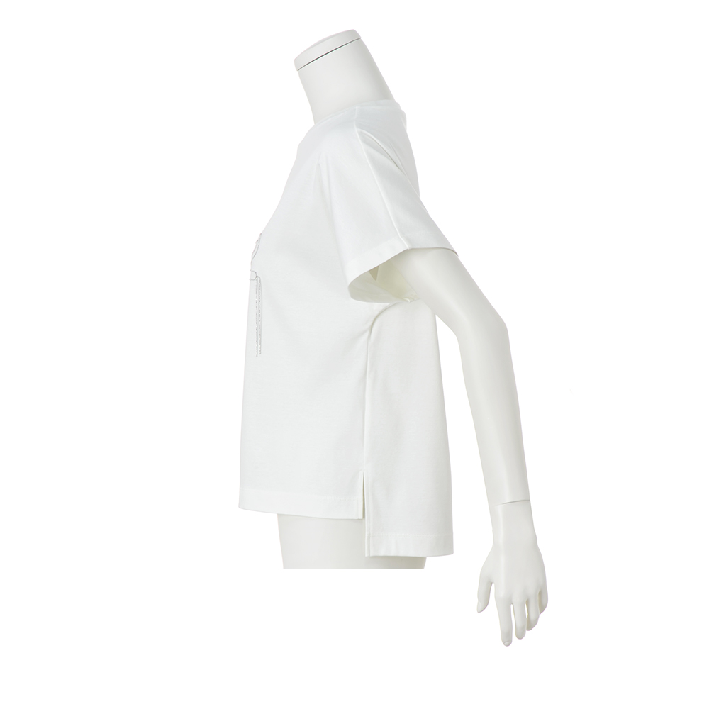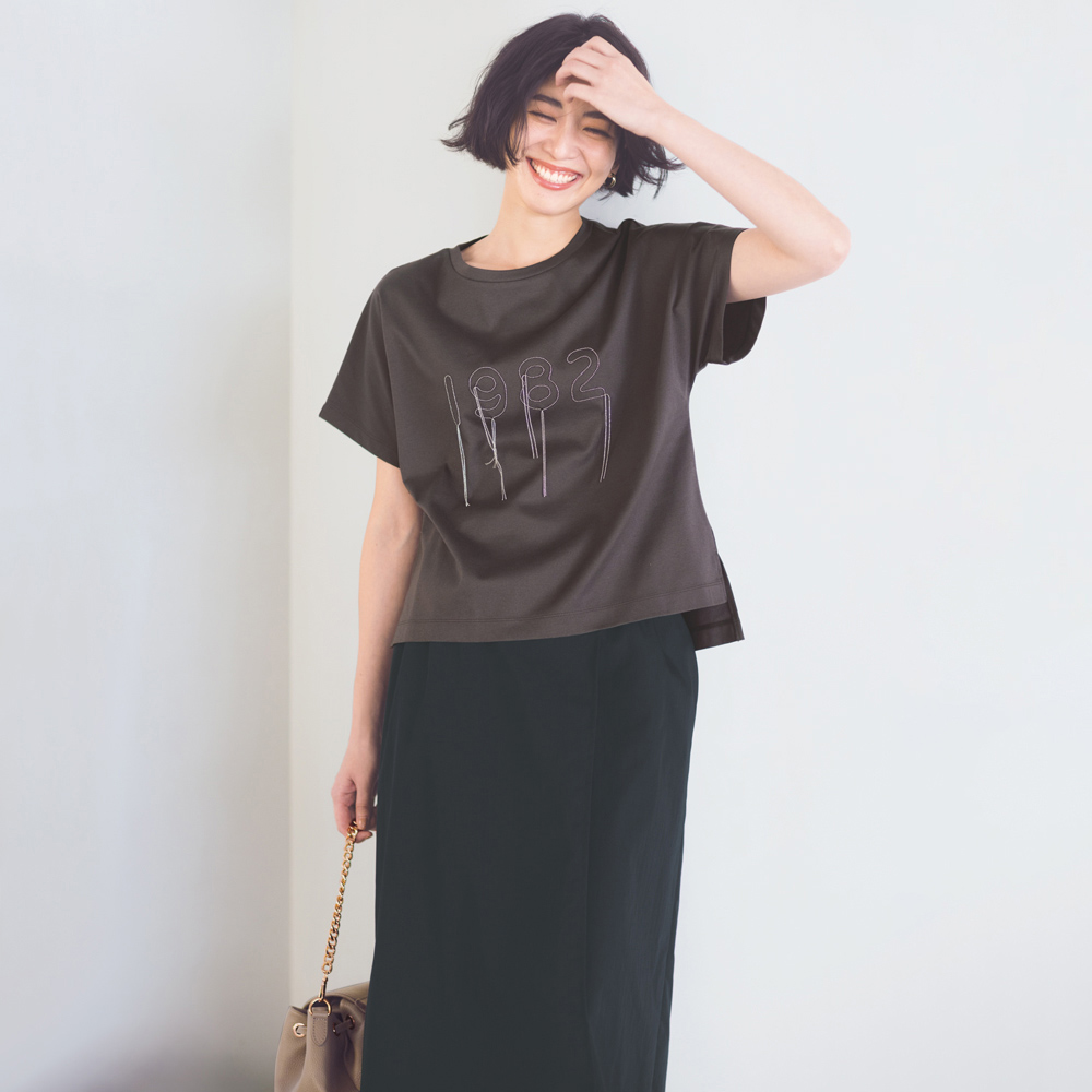 ≪LUXE CASUAL≫肩の力の抜けたラフさのなかに、そこはかとなく漂う上質感。きれいめ派にもすんなりなじむ、夏の日常を彩る大人の上品カジュアル。日本製の生地と縫製にこだわった、大人にこそ似合うTシャツ。ドルマンスリーブのゆとりのあるシルエットが、こなれ感漂う一着。ポイントは、胸元にあしらったボールチェーンの刺しゅう。特殊な専用ミシンを使い、繊細なカーブまで美しく表現しました。控えめなきらめきがアクセサリーがわりにも!チャコールブラウンとオフホワイトの2色展開でご用意しています。