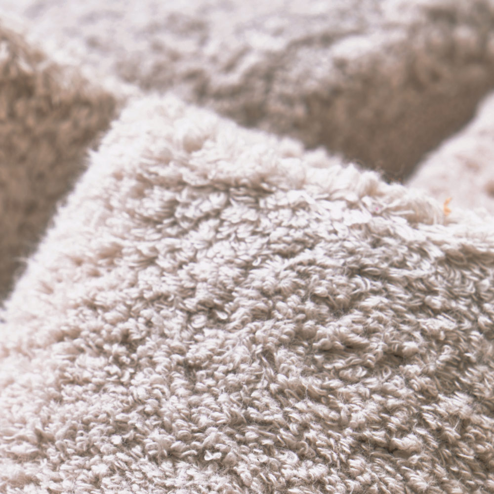 ウチノのベストセラータオル“とっても良く吸う「ごくふわ」”の生地を使用。柔らかな感触が心地良い。