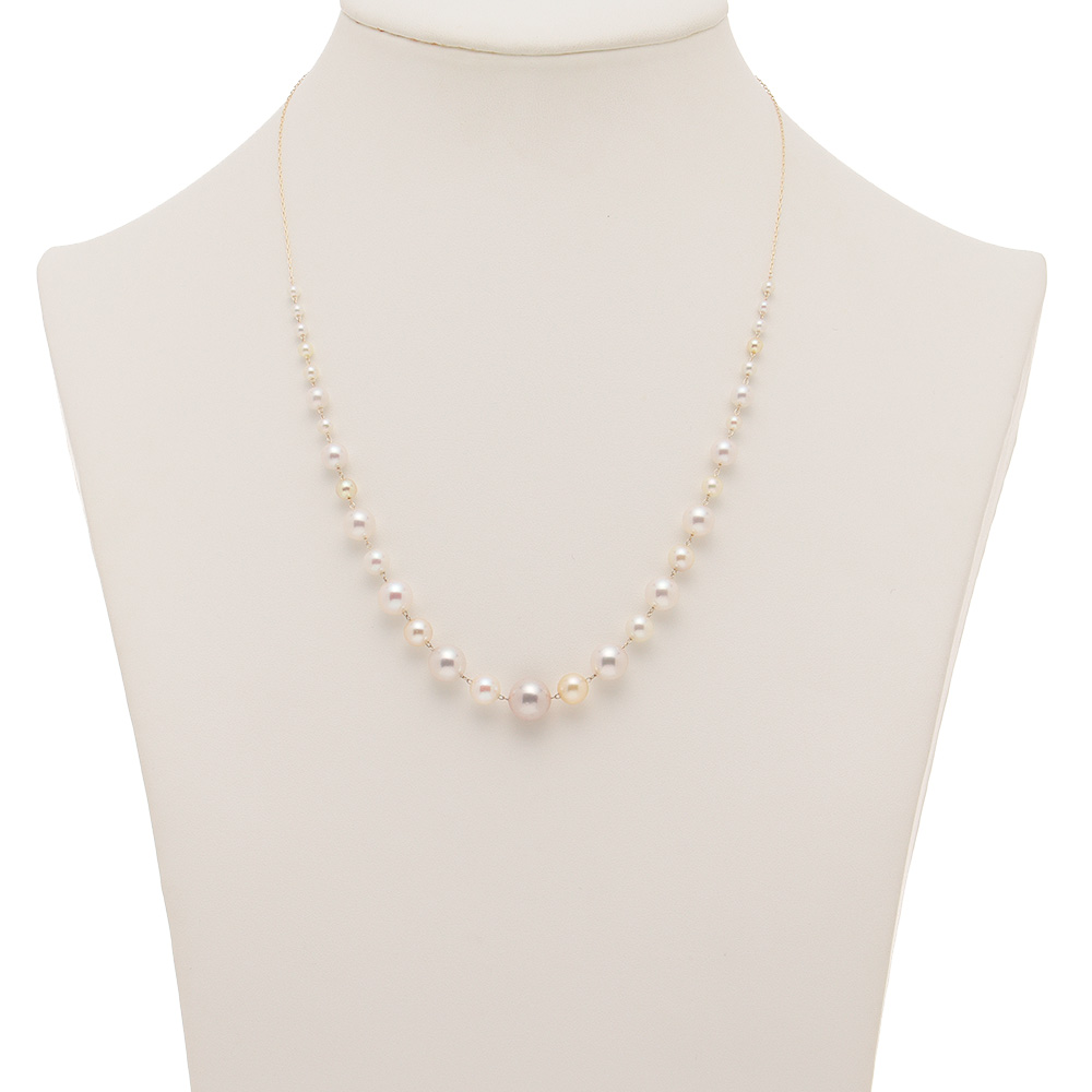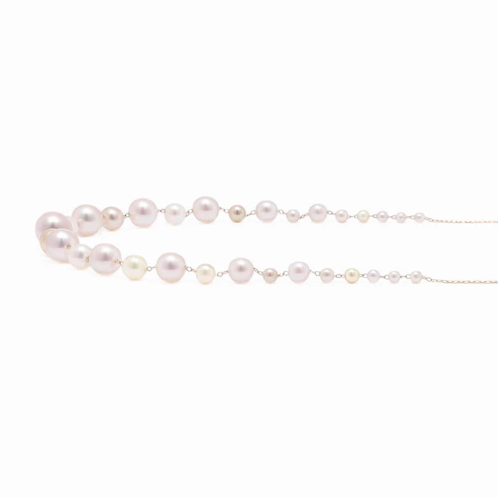 ATTRACTIVE PEARLマイ・スタイルと作り上げる魅惑のパール神秘の天然美としていつの時代も愛されるパール。希少性ゆえに纏う人の個性が際立つ羨望のアイテムをご紹介しましょう。軽やかな洗練を奏でるベビーパールテリの美しいアコヤパールを厳選、さらに白からイエローの柔らかなカラーに拘ったグラデーションネックレスは、今ではなかなか手に入らない逸品です。