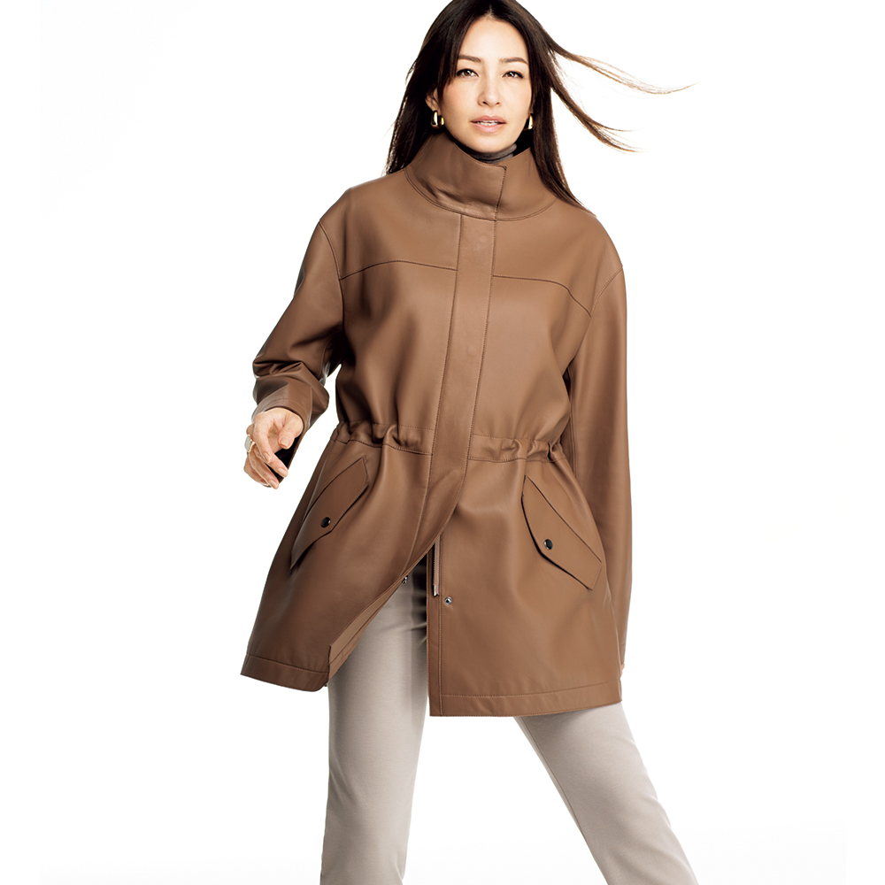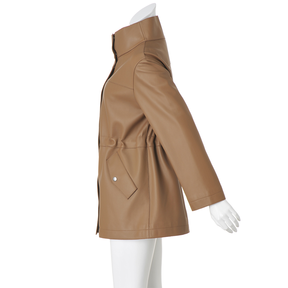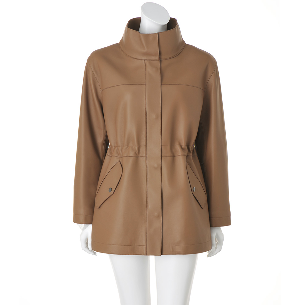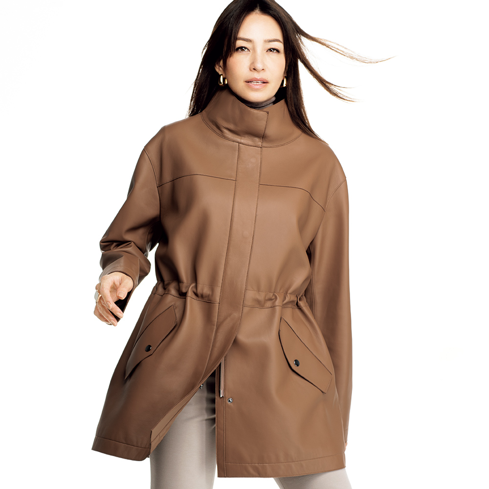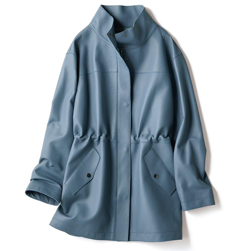 今季マストバイのコート袖を通すたび、新たな魅力を紡いでくれるから。美意識と品格を高め、真に活躍するアウターを厳選。イタリアが育んだ豊かな質感と色彩に心奪われるラムレザーコート。しっとりなめらかなナッパ加工の上質イタリアンラムレザーを使用した贅沢なハーフコート。小顔効果が期待できるアイコニックなスタンドカラー、シルエット変化も楽しいウエスト内側のドローコードなど、技ありのディテールを満載しました。軽さとしなやかさを追求した着心地の秘密は、上質素材に加えて、高度な技術を要する“裁ち切り縫製”にあり。匠の職人技が生む端麗なステッチは、ミニマルな装飾の一部となって、コートに品格を与えています。イタリアの美意識を宿す「レザーハーフコート」カジュアルなデザイン、お洒落に慣れた大人が惚れる上質素材で。この余裕と遊び心に感嘆!≫ POINT・削ぎ落したミニマルなデザインと端の裁ち切り仕様で軽やかに。ステッチワークが随所に効いて、洗練された印象。・キズやムラの少ない原皮を選りすぐり、丁寧に鞣して、洗練されたグレイッシュブルー、ライトブラウンに美しくコーティングしました。・ドロップショルダーのリラクシーなシルエット。内側コードを調節すれば、一瞬でメリハリラインに。