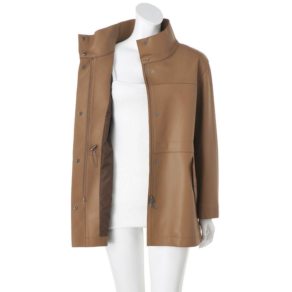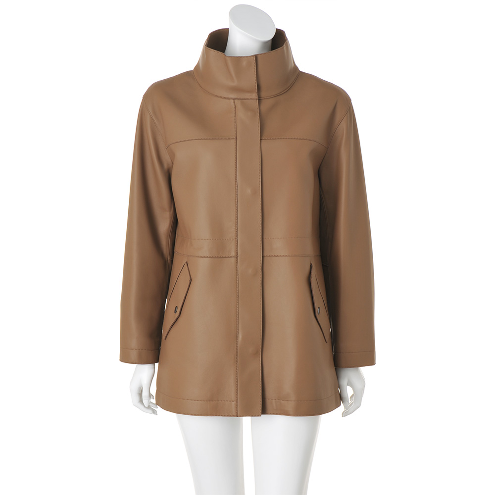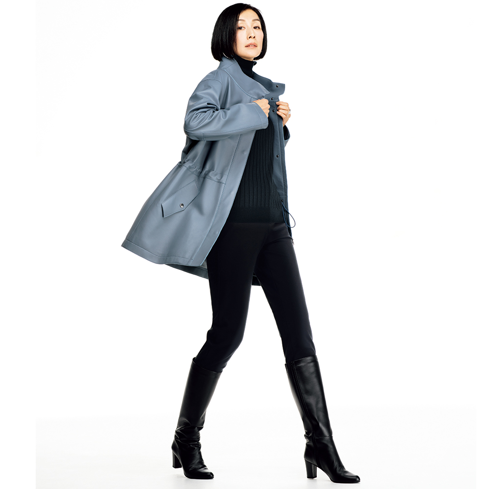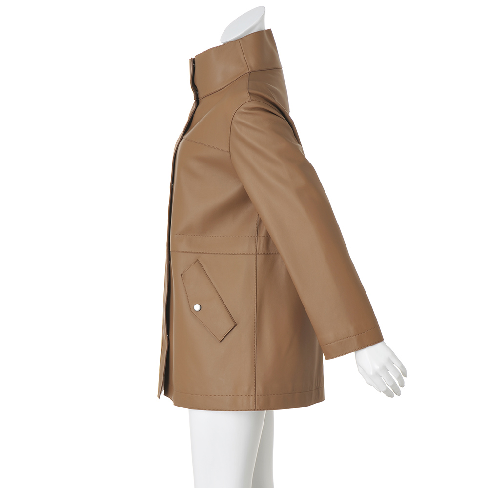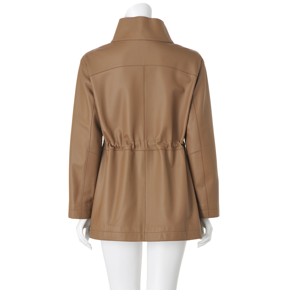 今季マストバイのコート袖を通すたび、新たな魅力を紡いでくれるから。美意識と品格を高め、真に活躍するアウターを厳選。イタリアが育んだ豊かな質感と色彩に心奪われるラムレザーコート。しっとりなめらかなナッパ加工の上質イタリアンラムレザーを使用した贅沢なハーフコート。小顔効果が期待できるアイコニックなスタンドカラー、シルエット変化も楽しいウエスト内側のドローコードなど、技ありのディテールを満載しました。軽さとしなやかさを追求した着心地の秘密は、上質素材に加えて、高度な技術を要する“裁ち切り縫製”にあり。匠の職人技が生む端麗なステッチは、ミニマルな装飾の一部となって、コートに品格を与えています。イタリアの美意識を宿す「レザーハーフコート」カジュアルなデザイン、お洒落に慣れた大人が惚れる上質素材で。この余裕と遊び心に感嘆!≫ POINT・削ぎ落したミニマルなデザインと端の裁ち切り仕様で軽やかに。ステッチワークが随所に効いて、洗練された印象。・キズやムラの少ない原皮を選りすぐり、丁寧に鞣して、洗練されたグレイッシュブルー、ライトブラウンに美しくコーティングしました。・ドロップショルダーのリラクシーなシルエット。内側コードを調節すれば、一瞬でメリハリラインに。