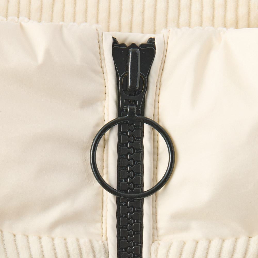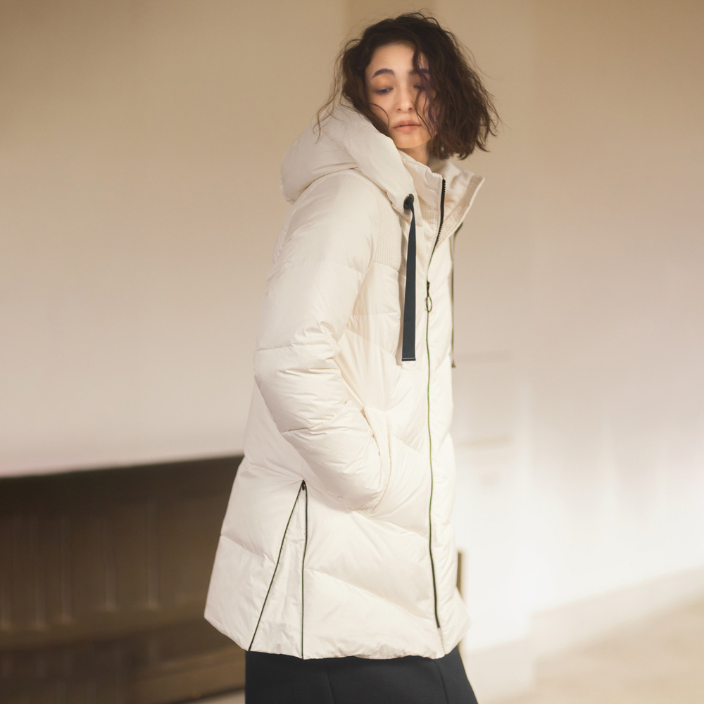 Winter Holiday楽しみなイベントが満載な季節が到来!ワクワクするシーンを迎えるべく、どこか特別感のある着こなしでファッションをアップデートしませんか?なめらかなタフタ生地とあたたかみのあるコーデュロイ生地の異素材コンビが旬の表情に。トリミングがわりのファスナーやフードまわりに通したグログランリボンなど、要所に効かせた配色使いもポイント。ダウンを押さえるステッチを、フロントのみV気味に配して、すっきり見えを狙いました。