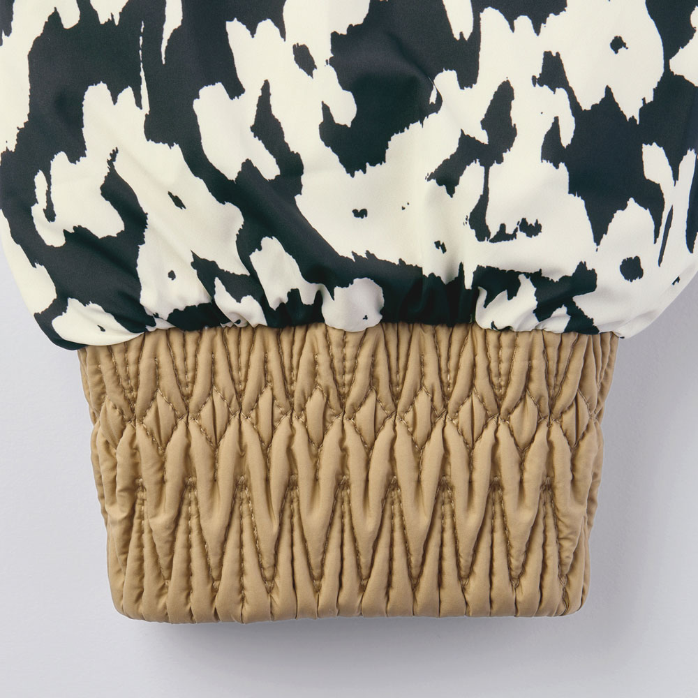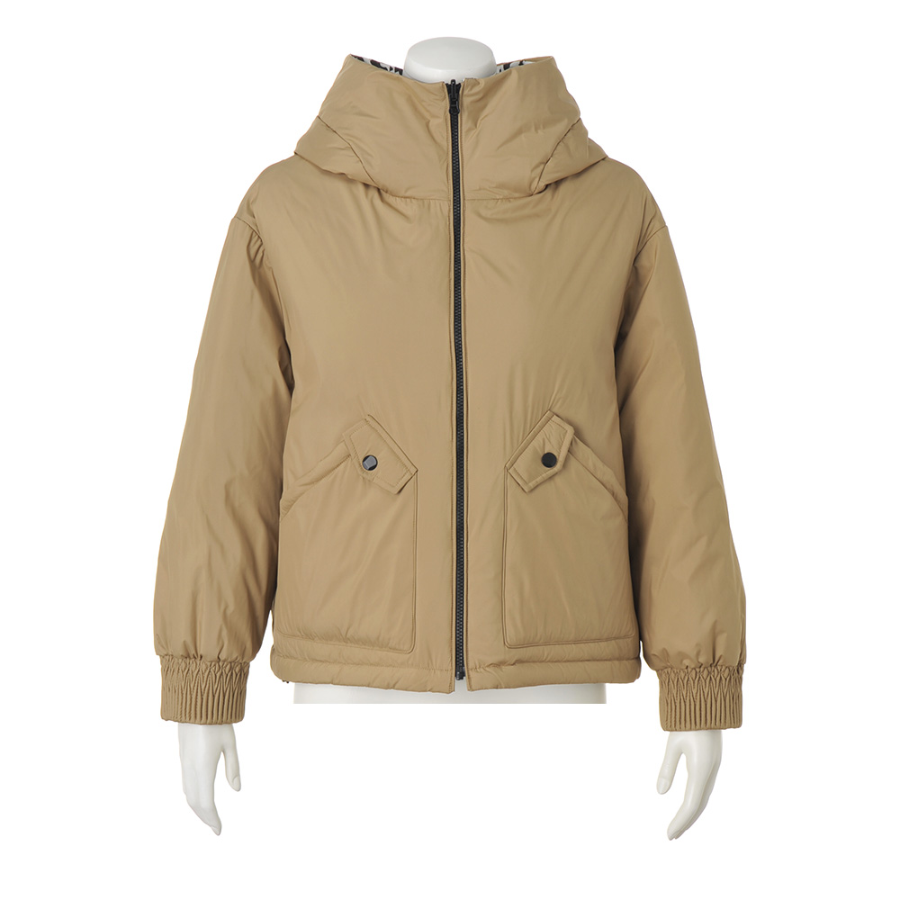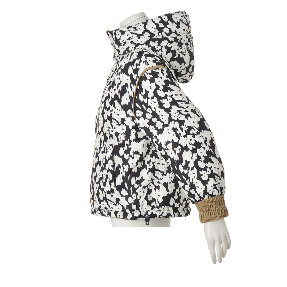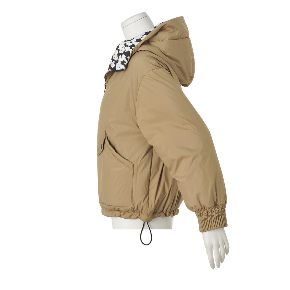 SPORTY MIX春の始まりにぴったり!カジュアルファッションに、アクティブなムードを添えた“スポーティミックス”を提案。軽快なおしゃれを楽しもう。気分やシーンに合わせてアレンジ着こなしの幅が広がる春アウター無地面はベージュ、柄面はモノトーンの花柄をプリントしたリバーシブルダウンジャケット。オーバーサイズでフードつき、裾はドローストリング仕様で絞ることもできます。無地面はデザイン性があるポケットがポイント。柄面はベージュを差し色にしたパイピング使いや袖口がアクセントとなり、遊び心満載です。