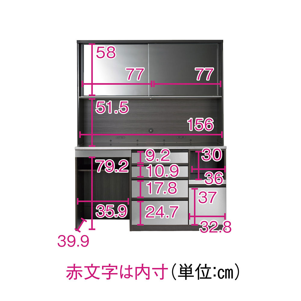 面倒な現地調査や施工工事無しでシステムキッチンクオリティの高機能ステンレス天板のキッチンが置くだけで簡単に叶う!天板は傷や汚れが目立ちづらく、お手入れもかんたんなバイブレーション仕上げのステンレスを使用。生活に合わせて配置も選べて、各パーツも安心の高機能。さらに国内で1台ずつ丁寧に生産と、機能とクオリティにこだわった高級シリーズです。面倒な現地調査や施工工事無し!システムキッチンクオリティの高機能ステンレス天板のキッチンが、置くだけで簡単に叶う!置くだけでお手軽に憧れのステンレス天板キッチンを実現できる天板は傷や汚れが目立ちづらく、お手入れもかんたんなバイブレーション仕上げのステンレスを使用。生活に合わせて配置も選べて、各パーツも安心の高機能。さらに国内で1台ずつ丁寧に生産と、機能とクオリティにこだわった高級シリーズです。システムキッチン並みの高機能シリーズシステムキッチン並みの高機能を持つステンレス天板のキッチンカウンター&ボードが、工事不要で設置可能。高級感あふれるスタイリッシュなデザインで、暮らしに合わせてユニットの左右選択や、幅180cmタイプは位置の組み替えもOK。キッチン家電や使い勝手に合わせて自分だけの理想のキッチン空間をどうぞ。品質に定評のある国内工場生産注文を受けてから国内の工場で職人が一台一台丁寧に生産しています。毎日の料理がしやすいよう、手入れのしやすさや耐久性を重視し、隅々まで品質にこだわっています。高級感のある仕上がりで、長く使える信頼の一台です。天板は高級バイブレーション仕上げ厚みがあり、頑丈な天板は、システムキッチンでも高額オプションに採用される高品質なバイブレーション仕上げのステンレス製。傷も目立ちづらく長く美しく使えます。ステンレスの質感をリアルに再現したフロントデザインフロント部分はヘアライン加工のステンレスの質感をリアルに再現した、お手入れのしやすい塩化ビニールのシートを、縁の曲面も含めて1枚のシートを連続で貼り込むラッピング仕上げ。サイドまで1枚のシートを連続して貼り込むため手間と技術が必要ですがその分耐久性が高く、ステンレスの質感をよりリアルに再現したデザインが特徴です。引き出しは高強度のブルム社フルスライドレール引き出しはブルム社製の高強度フルスライドレールで、スムーズな開閉しソフトクローズ機能付き。底板も一般的な引き出しよりも厚い5mm厚の板を使用しているので、重い物を入れても安心です。幅を選べるユニット部分で自由にカスタマイズ炊飯器や電子レンジを置くユニットと引き出しは、お手持ちのキッチン家電や作業導線によって設置位置を選べる!オープンユニットの位置は組替が可能で、暮らしに合わせてお好みで設置が可能。・100cm幅:炊飯器エリア40cm+引き出し60cm・120cm幅:炊飯器エリア40cm+引き出し80cm・160cm幅:炊飯器エリア40cm+引き出し60cm+ダストボックスや重いストック品などを置けるオープンユニット60cmキッチンボードタイプにも工夫がいっぱいキッチンボードタイプの上部のガラス部分には飛散防止加工が施されて安全に配慮されています。スライド式の引き戸はゆっくりと静かに閉まるソフトクローズ仕様です。棚板は6cmピッチで調節可能で、アルミメタルフィット仕様で汚れに強く、サッと拭き釣るだけでお手入れも簡単です。システムキッチンクラスのクオリティで施工費なし!現地調査や設置工事が不要で、置くだけの簡単設置。コストを抑えてシステムキッチンクラスの高機能を自宅で楽に楽しめます。