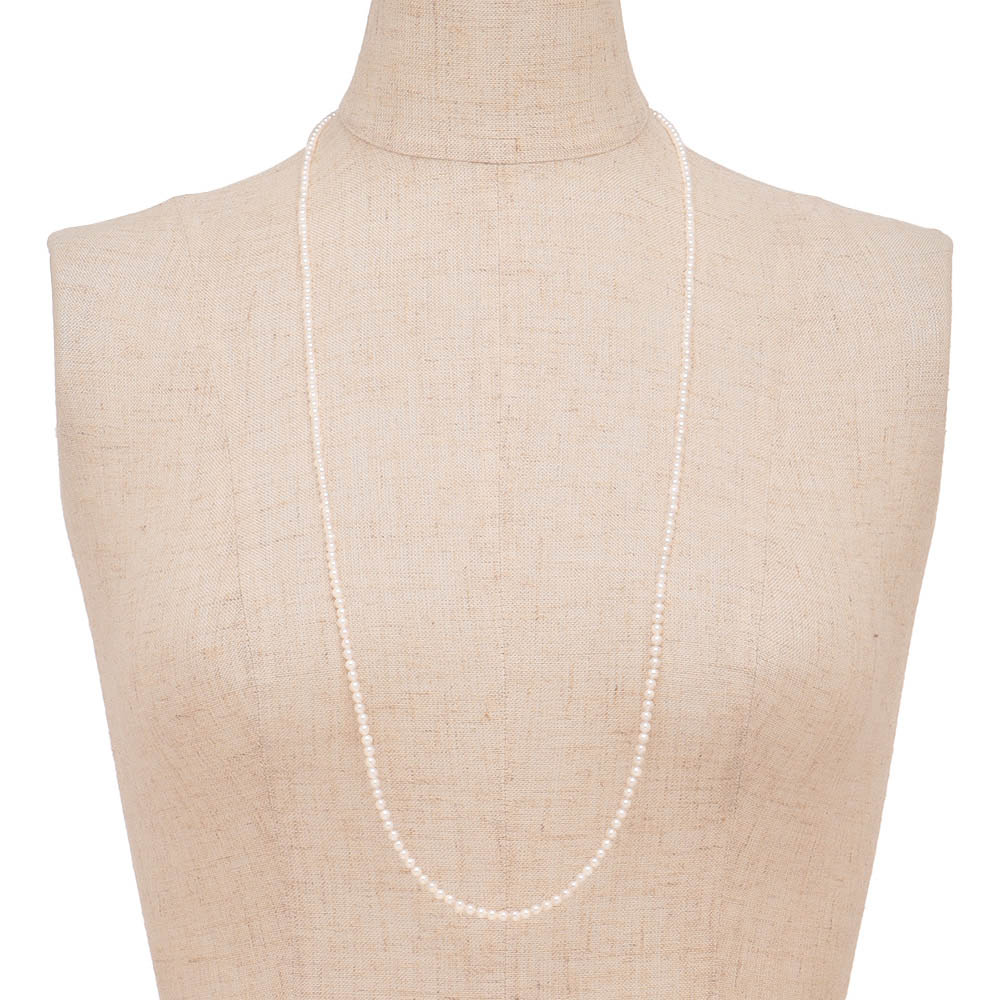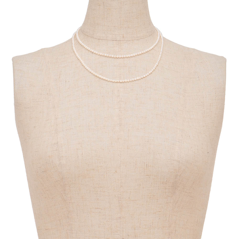 ATTRACTIVE PEARLマイ・スタイルと作り上げる魅惑のパール神秘の天然美としていつの時代も愛されるパール。希少性ゆえに纏う人の個性が際立つ羨望のアイテムをご紹介しましょう。品格と可憐さを備え、他のジュエリーとしなやかに調和するパール。自分らしさを表現するジュエリーレイヤードに欠かせない存在です。アコヤのベビーパールの中でも数少ない3mm珠を選りすぐり、丹念につないだ贅沢なロングネックレス。