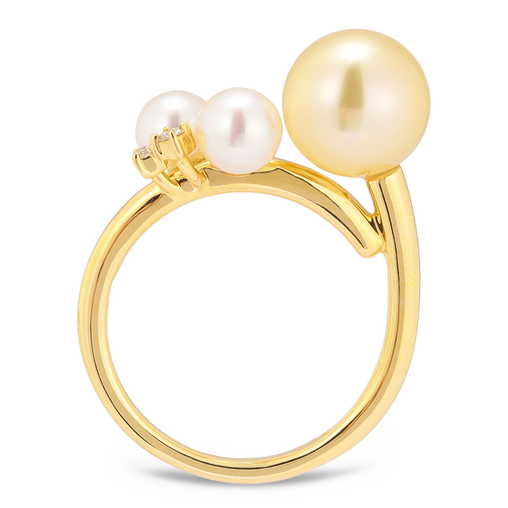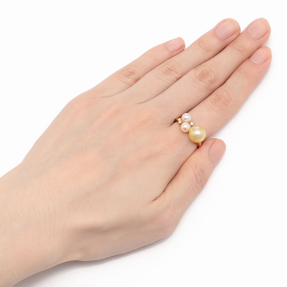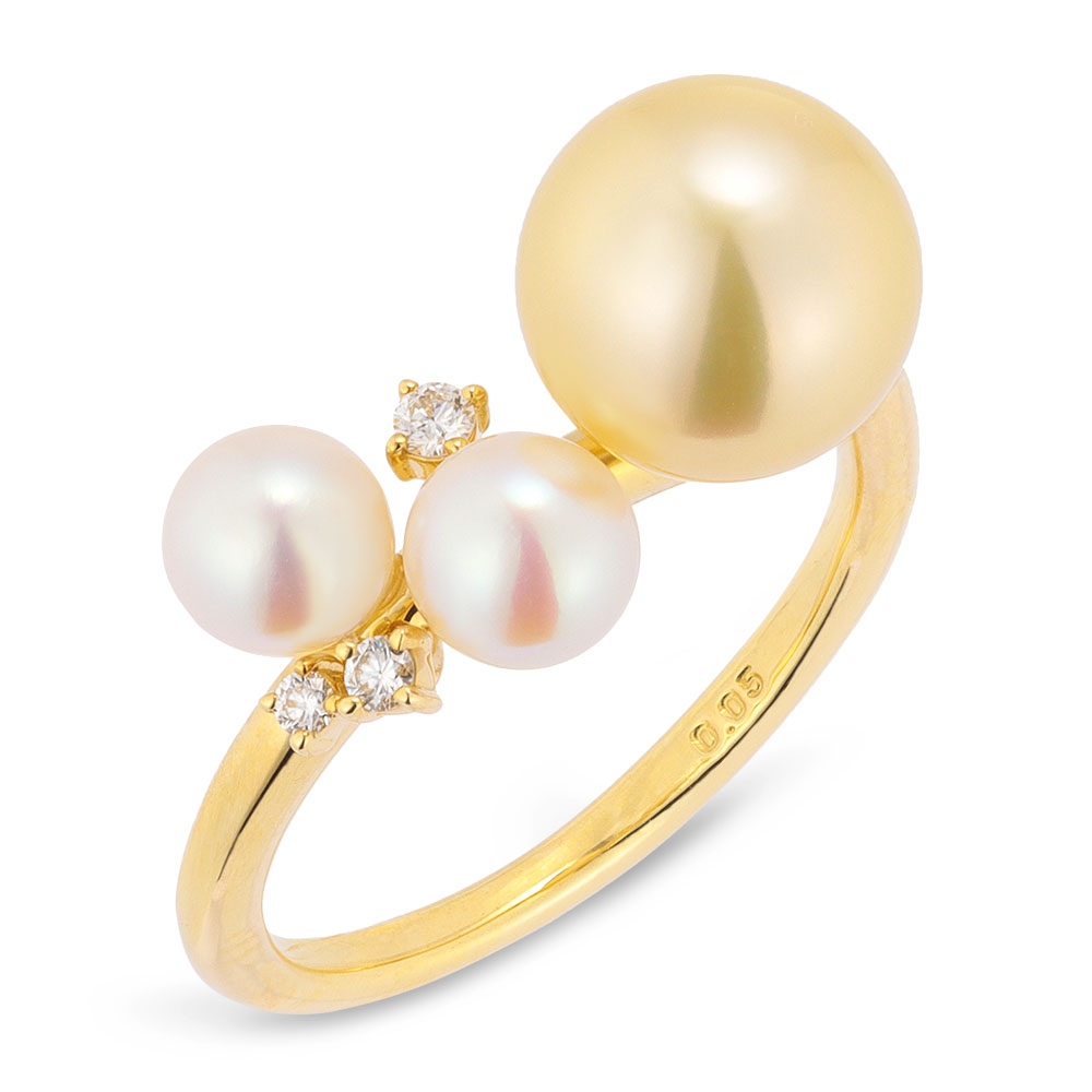 ATTRACTIVE PEARLマイ・スタイルと作り上げる魅惑のパール神秘の天然美としていつの時代も愛されるパール。希少性ゆえに纏う人の個性が際立つ羨望のアイテムをご紹介しましょう。個性もサイズも異なる珠を自由に組み合わせたリングは、モダンパールの真骨頂!優美に輝くゴールドパールにダイヤとベビーパールを添えた小粋なリング。