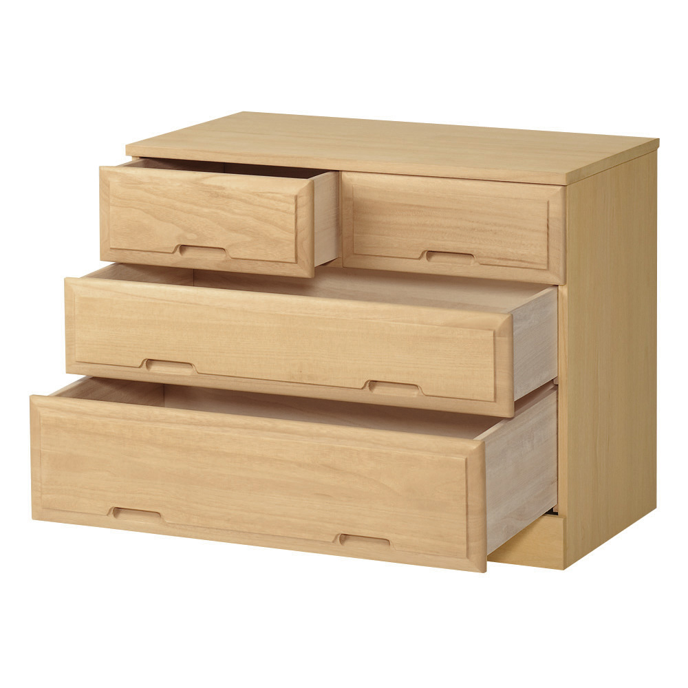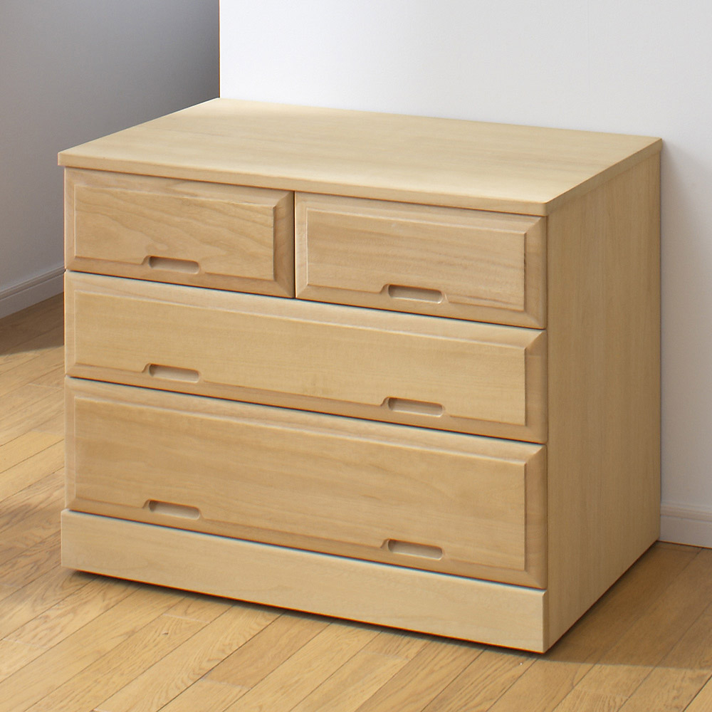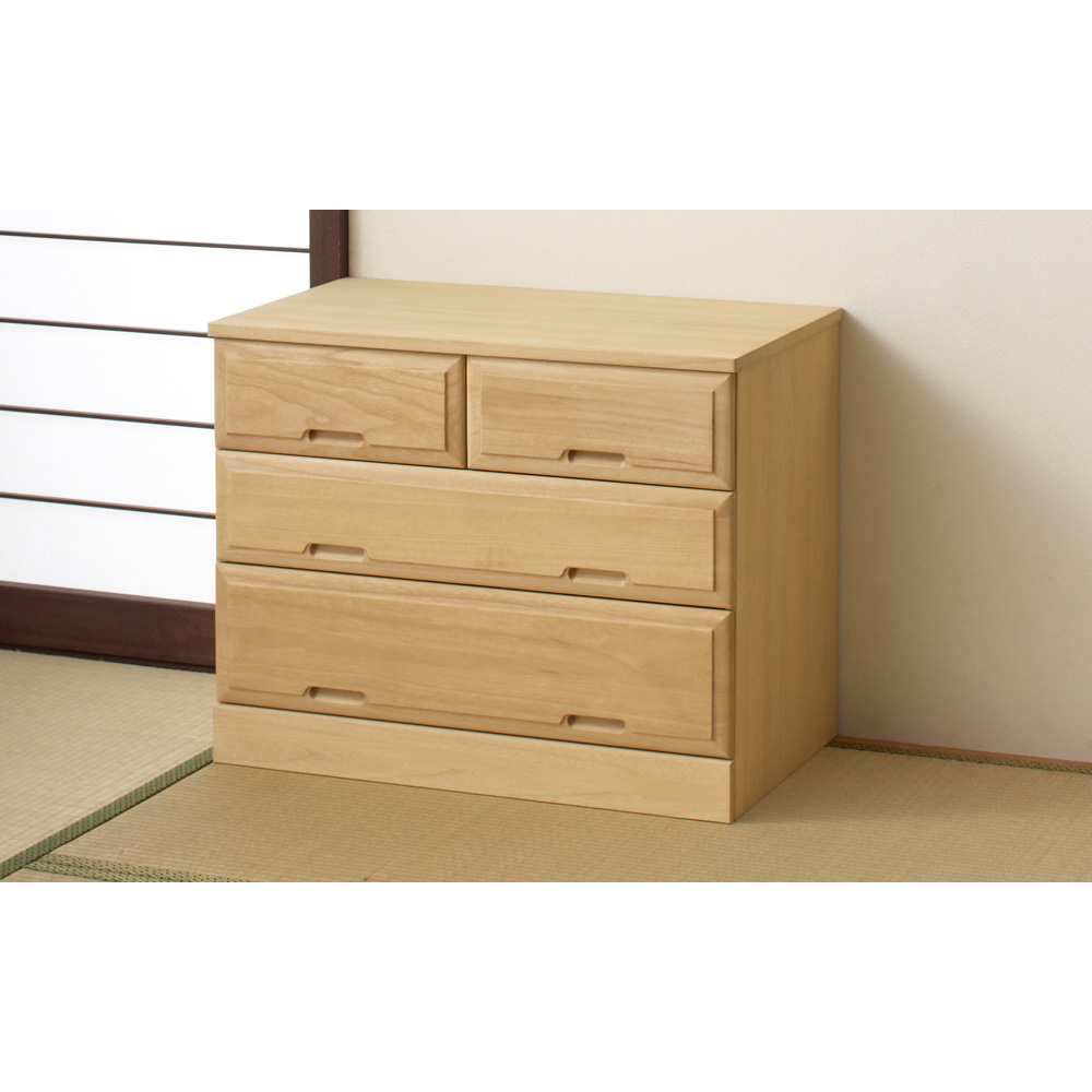 洋室にも調和する洋風デザインの総桐チェスト。着物をたとう紙に入れて収納できる幅100cmと洋服収納向けの幅75cmの2サイズに各3〜7段の合計10種類。しまう物、場所によって選べる衣類収納タンスです。日本の伝統とモダンデザインが融合した総桐チェスト●素材は細部にまでこだわった総桐仕様。背面にも桐材を使用しています●桐本来の美しさを活かしした伝統的なとのこ仕上げも魅力●幅は75cm・100cm。高さは3段〜7段までご用意。用途に応じて選んでいただけます。●総桐ながらモダンなデザインなので、どんなお部屋にもマッチします洋室にも和室にもおすすめです随所に光る使いやすさのポイント●引き出し内部も衣類をしまうのにぴったりな総桐仕様。大切な衣類の収納にお使いください●引き出しは取り外し可能なので入れ替えも可能です。衣替えもあっという間に完成します●隠しキャスター付きなので、お掃除の時などの移動も楽々。クローゼットでの使用もおすすめ一つ一つ丹精こめて作られた日本製です●熟練の職人が細部まで丁寧に仕上げた日本製です。●発売以来、ご好評いただいている人気の総桐チェストです。●完成品でお届けしますので、届いたらすぐにお使いいただけます。〜お客様から続々と喜びの声が届いています●チェストはとっても綺麗な白い桐ですね。値段の割には良いでしょう。もう少し大きいサイズがあればいいなぁと思います。本当は150cmくらいのタンスがよかった。でも、これにはなかったから。だからぜひもう少し高さのあるものを作っていただきたい。底板もちゃんとしているからとってもいいと思う。桐って防虫効果もあるし、湿気の調節もしてくれる。中の衣類をちゃんと守ってくれるから本当にお勧め。(幅75 5段タイプを購入 千葉県)●和室にも洋室にも合うデザインでサイズも丁度良く気に入りました。桐なので重量も軽いし下にキャスターがあり、模様替えと時にも役立ちそう。材質的にもやわらかいので、汚れや傷には気を付けないといけなさそうです。予定していたものも収納できましたが、小引きだしには小物類中心になりました。使用していた家具の引き取りは大変助かりました。(幅100 5段タイプを購入 千葉県)●マンション押入れ下段サイズにぴったり。国産品である点を気に入り購入した。たとう紙に合うサイズであり、着物収納に適している。小引き出しには、帯締めや帯揚げといった小物類の収納に適している。簡単に移動できることもメリット。購入してよかった。(幅100 3段タイプを購入 大阪府)