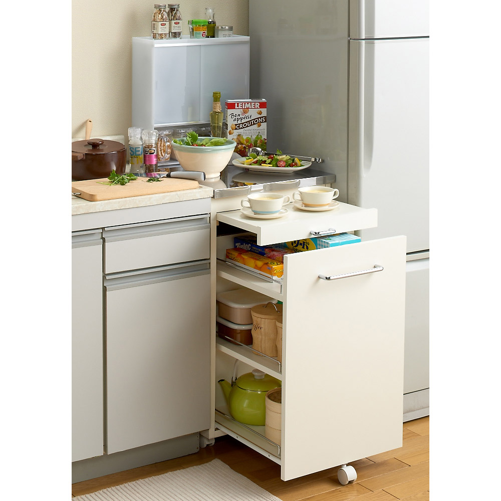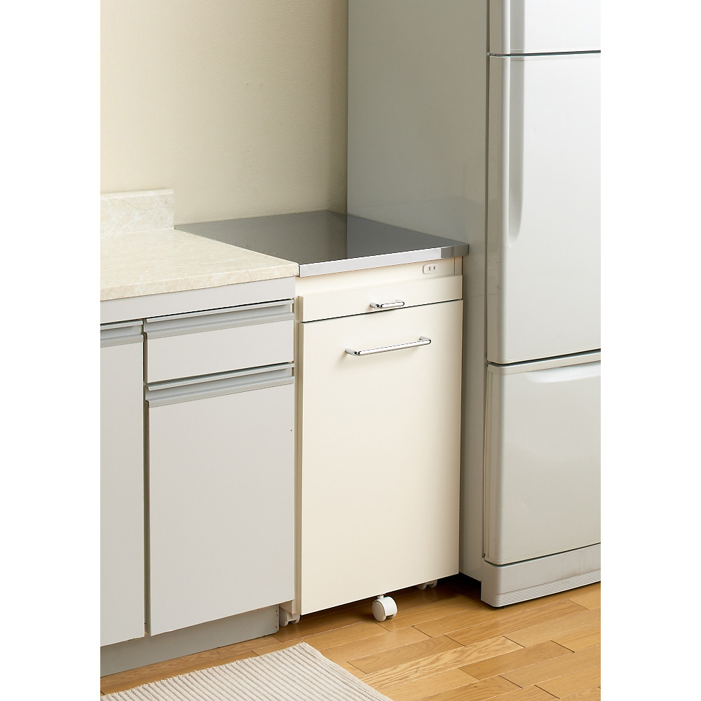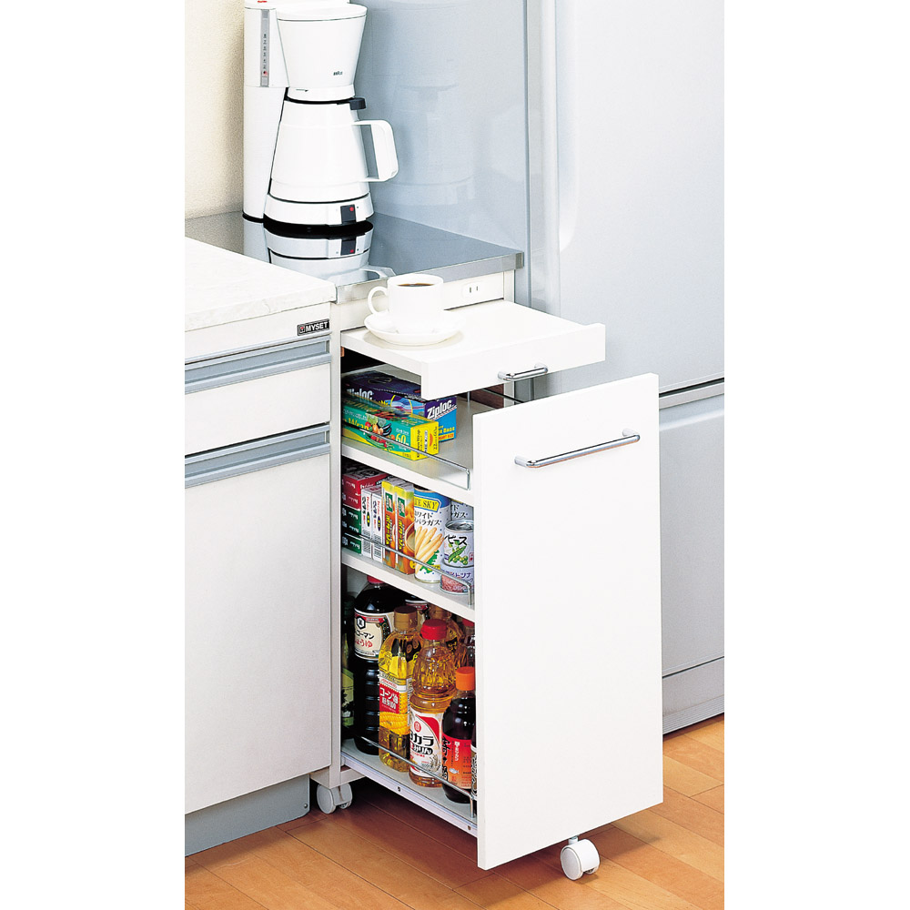 食洗機などの家電も置ける全体耐荷重約30kgのキッチンすき間ワゴン。熱や水に強いステンレス天板&コンセント付きで、シンクまわりが広がり作業台として使えるすき間収納家具です。キッチンワゴン式で移動もお掃除も楽々。シンク横を配慮して高さ80cmに設定。キッチン家電置きや食洗器、食器洗浄機置きとしても活躍!熱・水に強いステンレス天板でシンクまわりが広がる隙間家具◆シンクの延長として使用することが出来るステンレス天板。◆狭いキッチンに作業スペースが増えて空間を有効に使えます。◆キッチンならではの「熱いお鍋」や「水がたれる調理器具」を置いてもステンレスなら安心です。◆お手入れの簡単さもステンレス天板の魅力です。サッとひとふきでパッとキレイに。◆全体耐荷重約30kgあるので家電や食洗機置き台としても便利です。◆キッチン家電に便利な1口コンセント(計1200W)付きだからシンクの続きの調理台としても便利に使えます。◆ちょっと置きできるスライドテーブル付きでさらに使い勝手アップ!キャスター付きでラクラク移動できるキッチンワゴン式すきま収納◆ワゴンタイプならサッと動かせるから物が落ちても安心です。◆すき間はホコリが溜まりやすい…キッチンワゴン収納ならお掃除らくらく。◆キッチンワゴンは使いやすい場所にサッと移動OK。ダイニングテーブル脇やシンク横などで大活躍。選べる幅6サイズ&3種類の機能!シンクまわりを簡単置くだけリフォーム◆タイプ1…調味料のストックに便利。料理時の出し入れラクラク。スライド棚タイプ。◆タイプ2…引き出し4段で充実の収納力!キッチンチェストタイプ◆タイプ3…棚を段違いに設置すると奥の物が取り出しやすい。フライパンなどの収納にも便利です。◆幅は15cmからの6サイズ。設置するキッチン隙間に応じてお選びください。信頼と安心の国内生産で届いたその日から使える完成商品です◆国内の家具工場で職人がひとつずつ丁寧に仕上げました。◆完成品なので届いたその日からお使い頂けます(※取っ手とキャスターの取り付けがあります)。◆新築やリフォーム、模様替えの時にもおすすめです。◆お引越しや模様替えのタイミングでスペースを便利に有効活用してみませんか?◆高価な備え付け家具やリフォームよりも、リーズナブルに新生活を始められます。◆スキマを利用して効率の良い収納術を実践できます。◆是非普段使うものこそ、大好きなものをじっくりとご検討下さい。