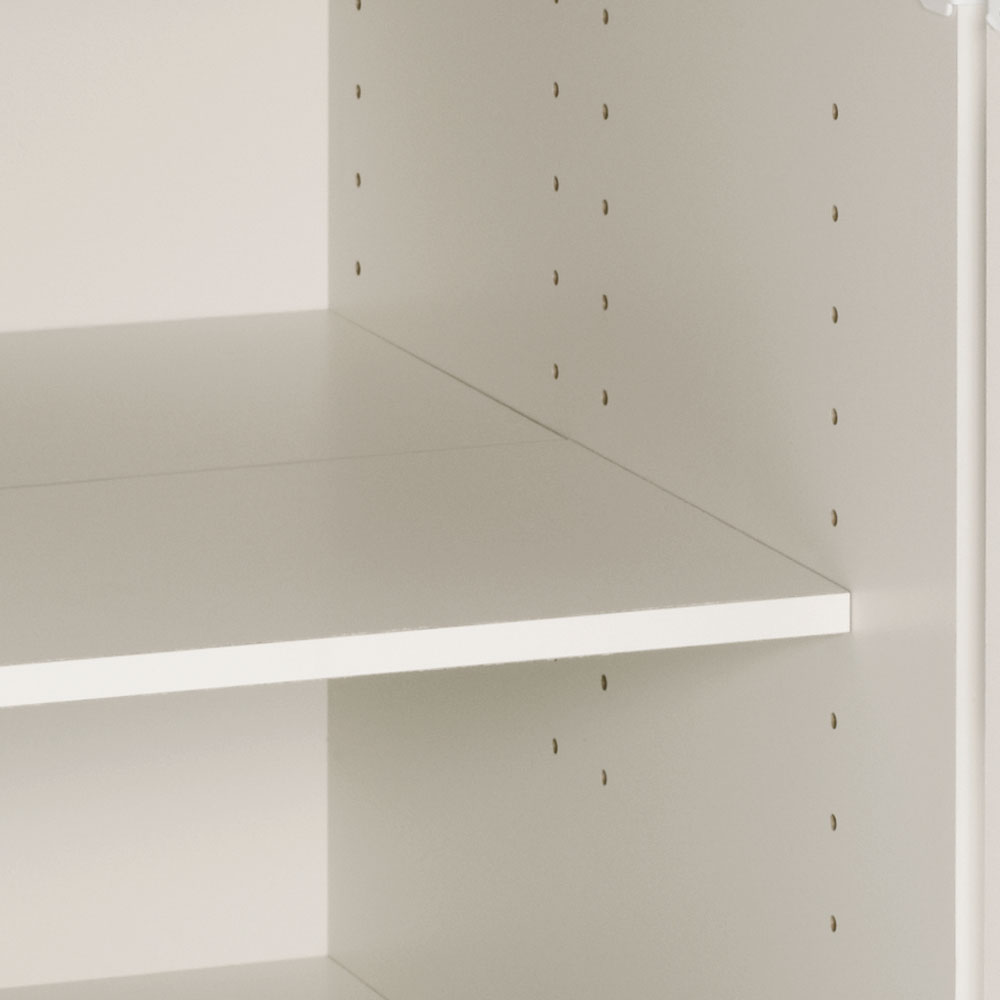 奥の棚と手前の棚をフラットに設定することも可能。 棚板は可動できます。