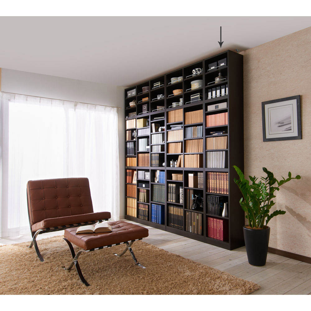 棚板は1cmピッチ間隔で調節、どんなサイズの書籍もぴったり収納できます。