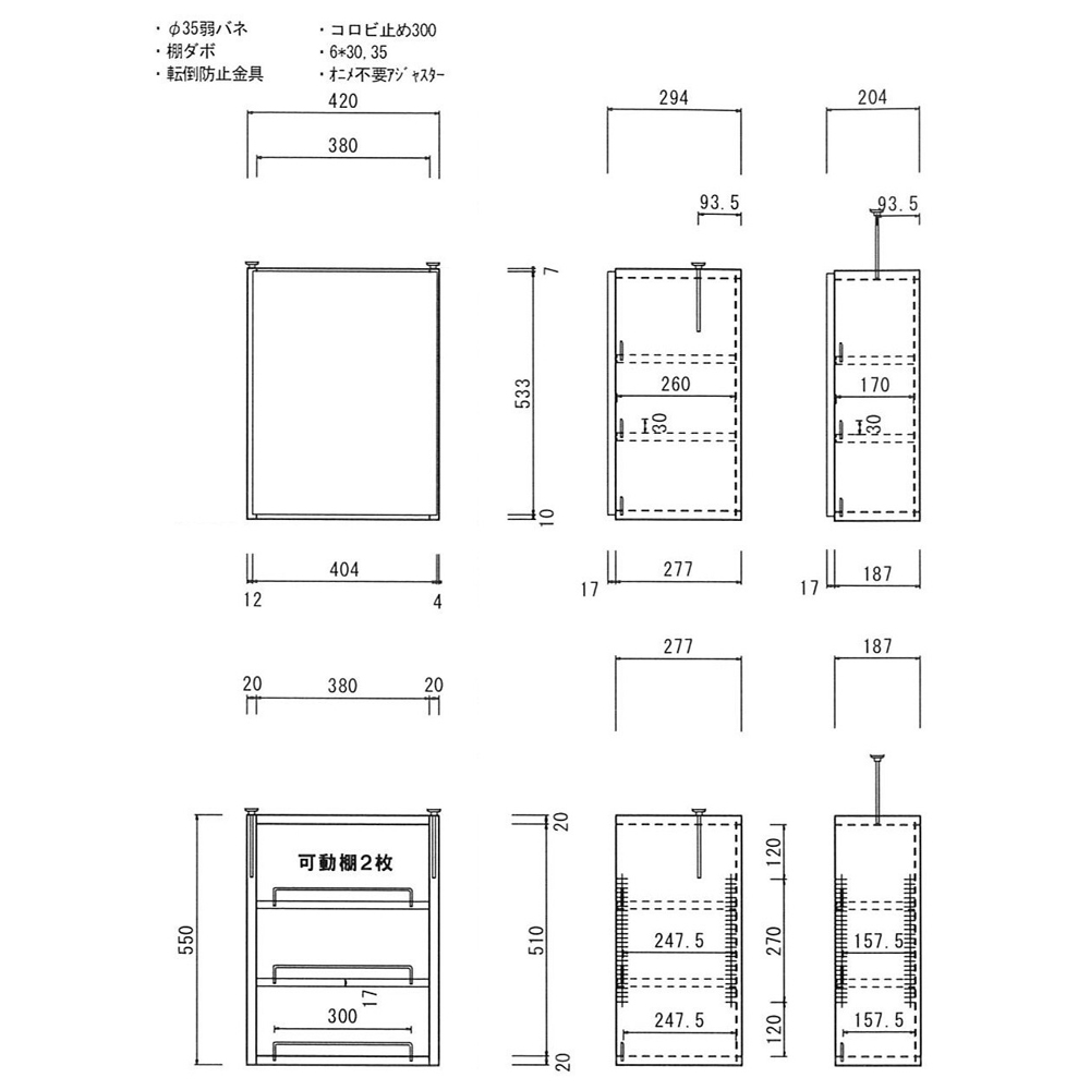 上置きは着脱式落下防止バー付き。高さいっぱいに収納しても安心です。