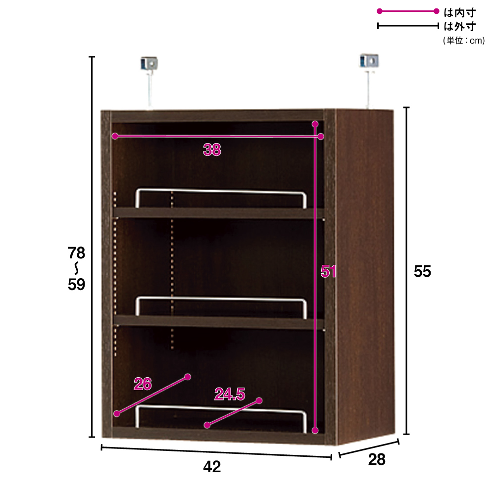 (ア)ダークブラウン ≪組合せ例≫ ※お届けは突っ張り上置きオープンタイプ(幅42cm奥行28cm)です。