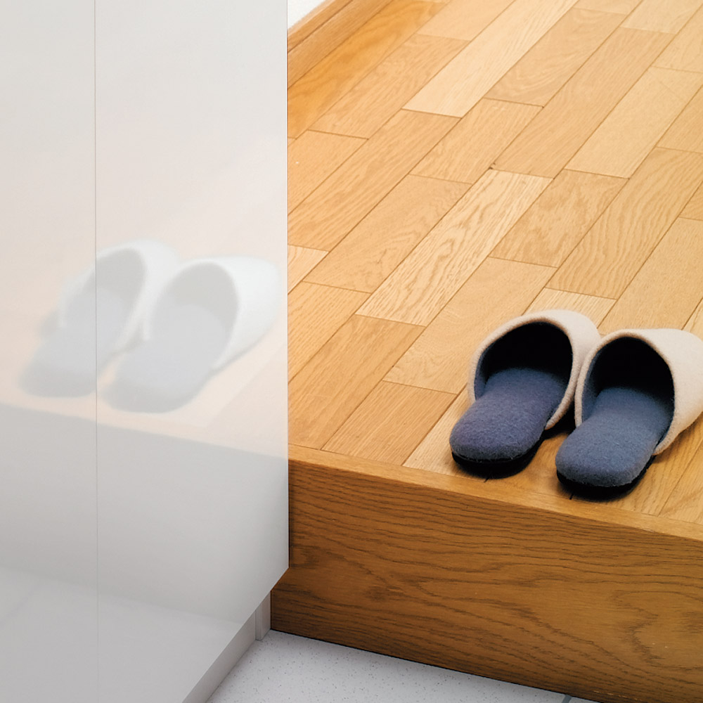 (イ)ホワイト扉は美しい光沢感のある仕上げです。汚れも拭いて落としやすい素材です。