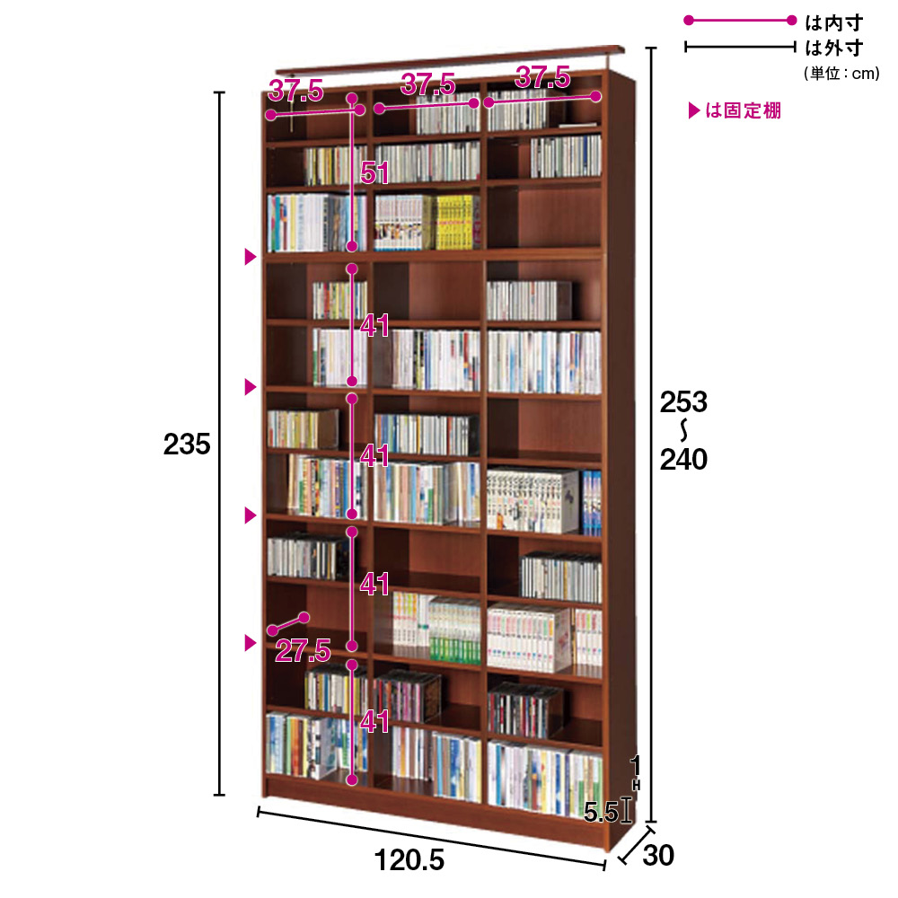(幅120.5cm奥行30cm) ※文庫本約1440冊収納
