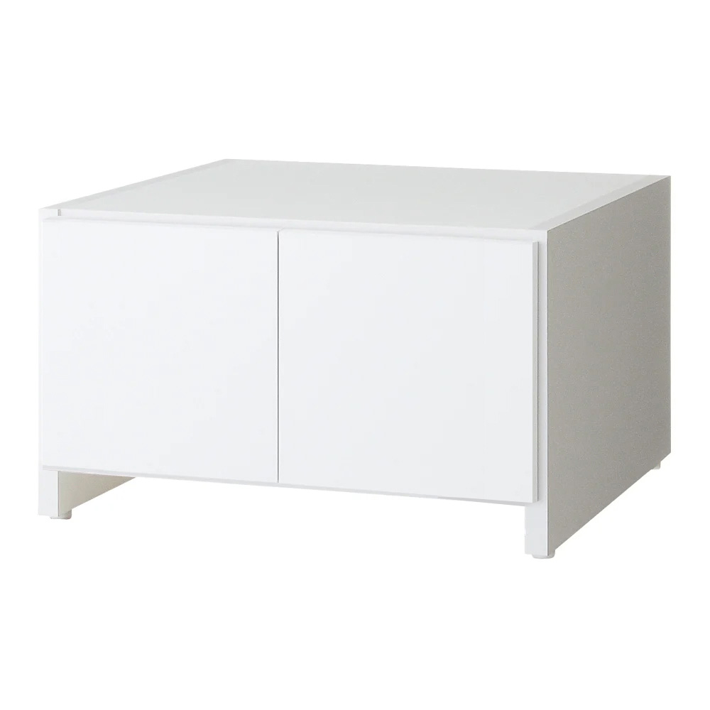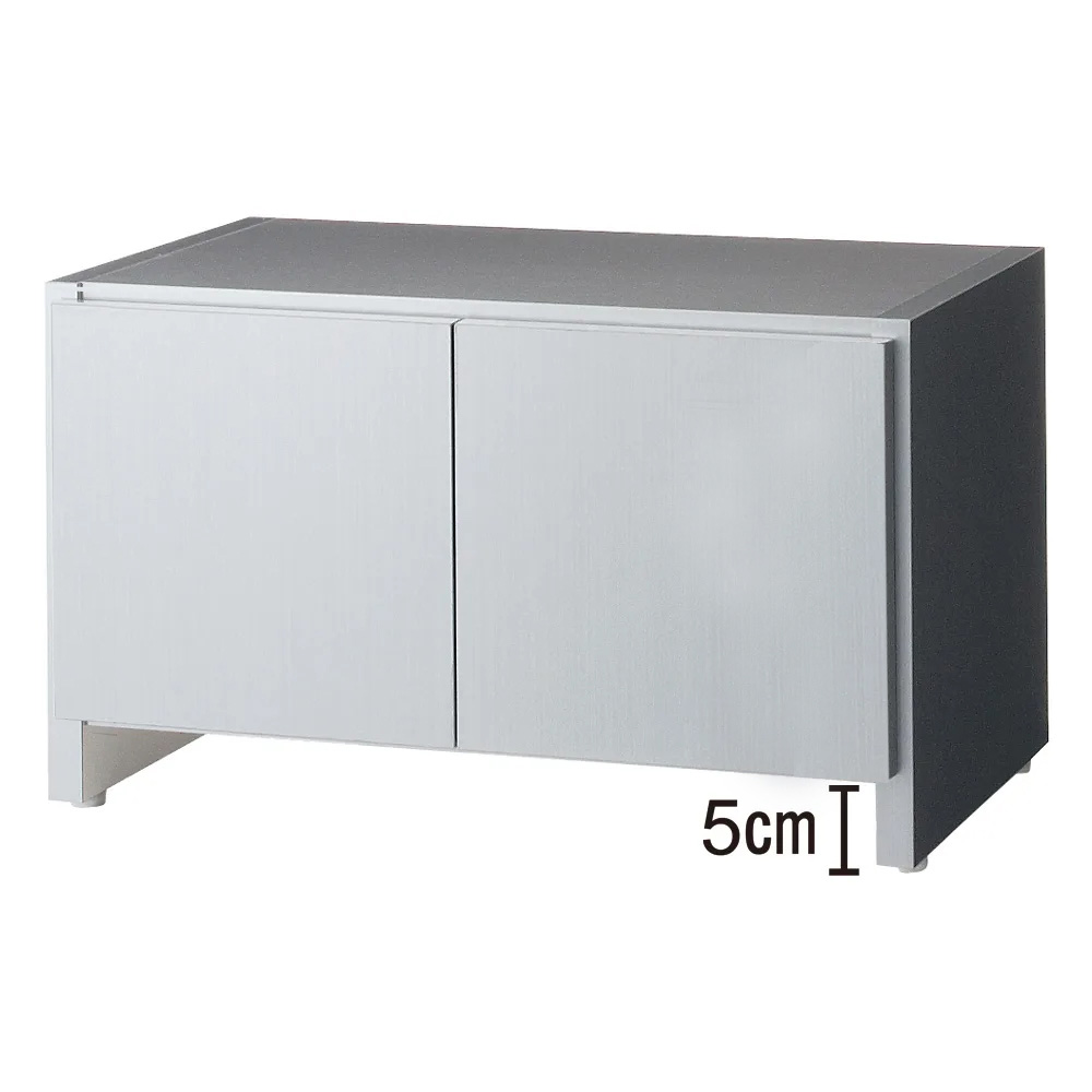 (イ)色見本 冷蔵庫の放熱を考慮した上げ底構造。脚部はアジャスターで高さ約1cm調節できます。 ※写真は奥行55cmタイプです。