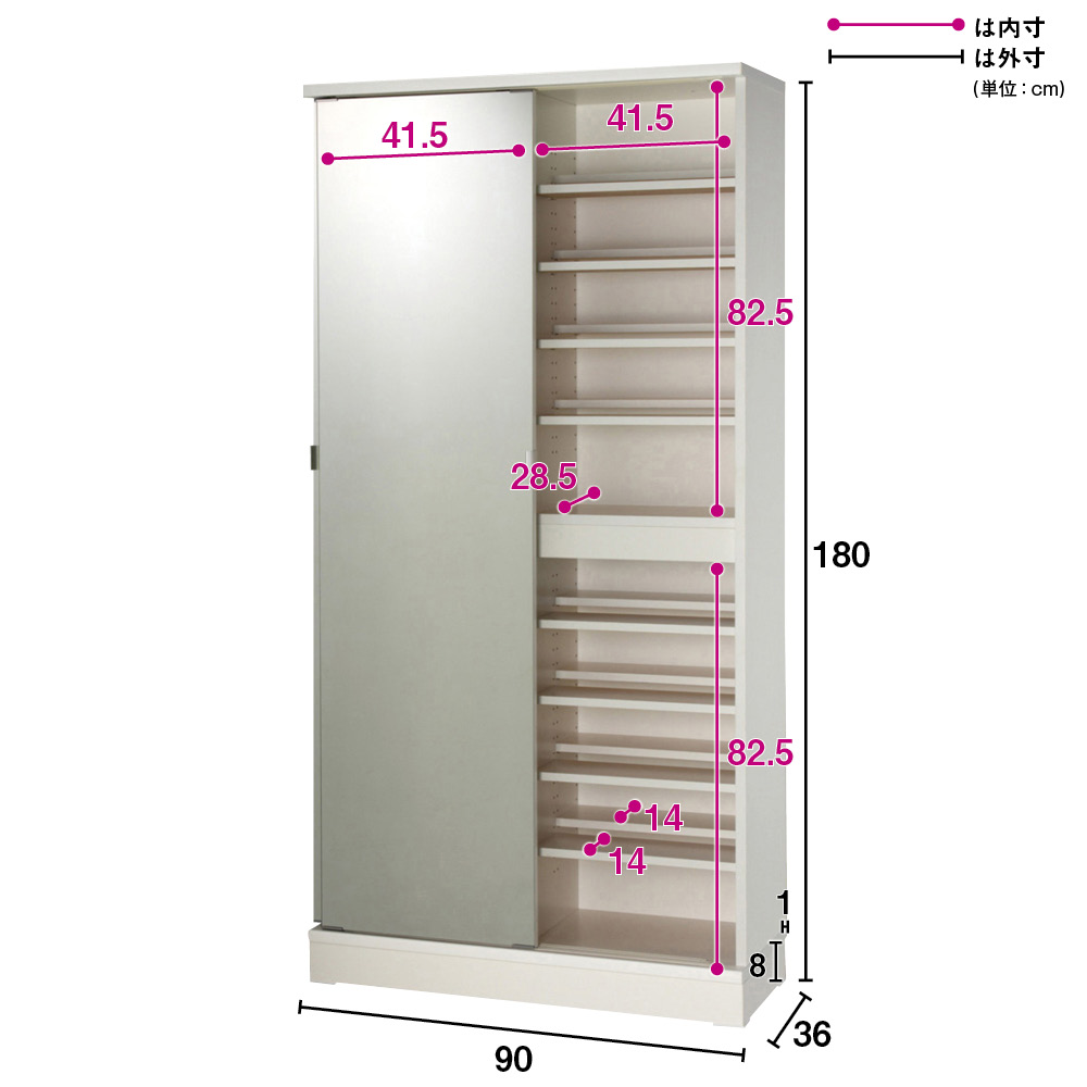 (ア)ホワイト ≪組合せ例≫ ※お届けはミラー扉(幅90cm)タイプです。