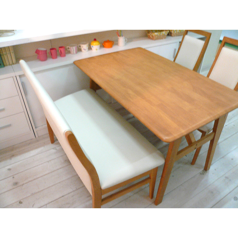 コーディネート例 一般的なダイニングテーブルの高さに合わせており、テーブルの延長上でフラットな使い方の提案商品です。