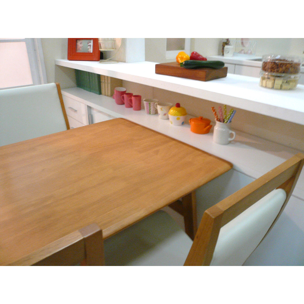 コーディネート例(ア)ホワイト 一般的なダイニングテーブルの高さに合わせており、テーブルの延長上でフラットな使い方の提案商品です。