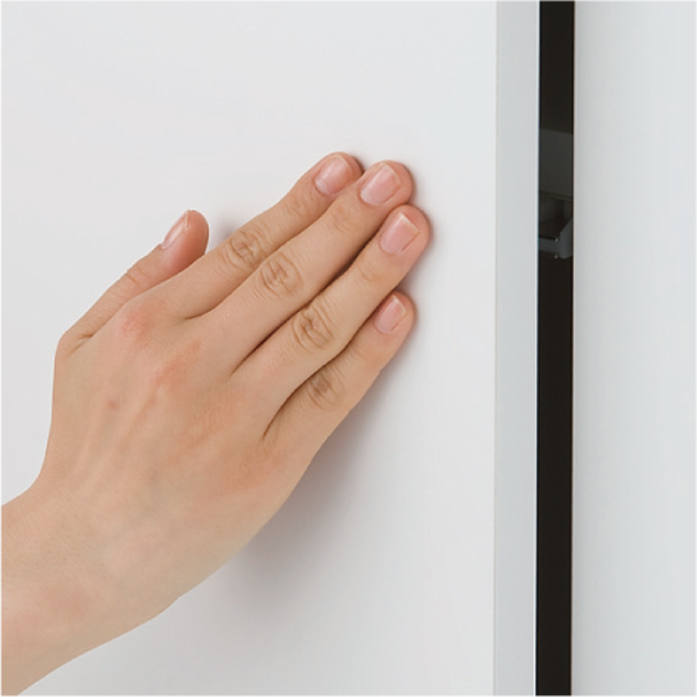 開き戸は取っ手のないすっきりデザインのプッシュ式。