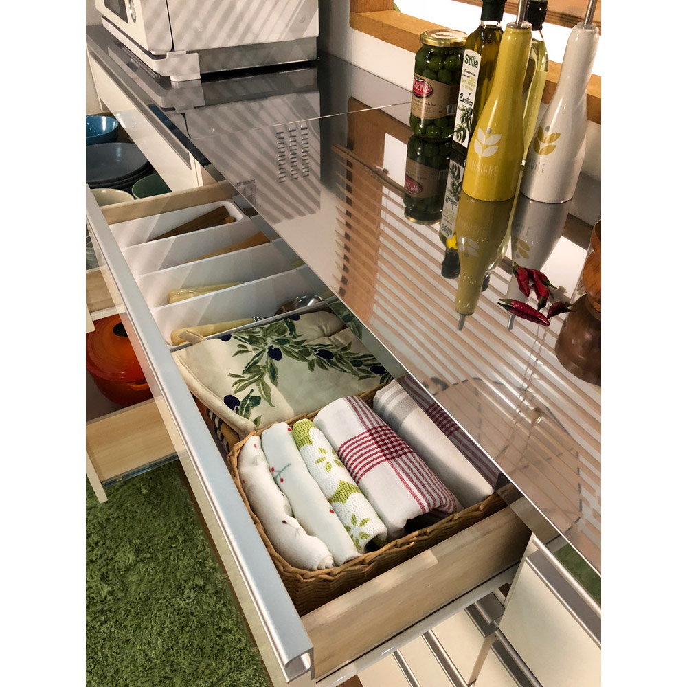上段の引き出しにはふきん類やカトラリーを入れて。