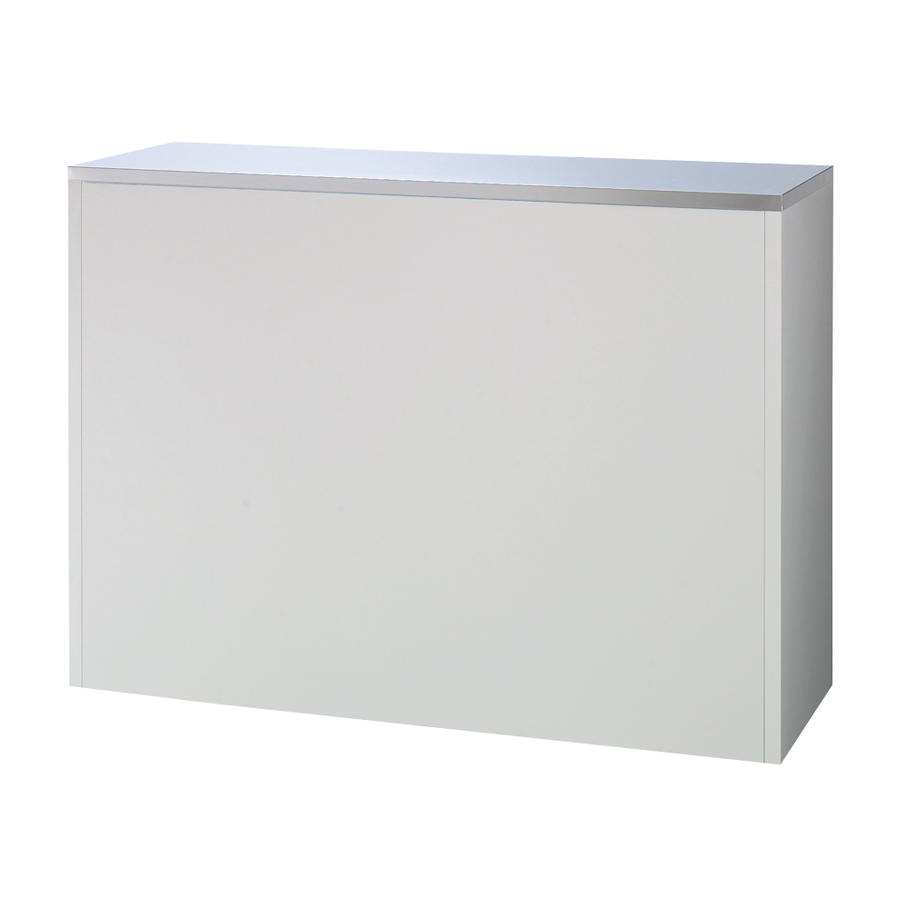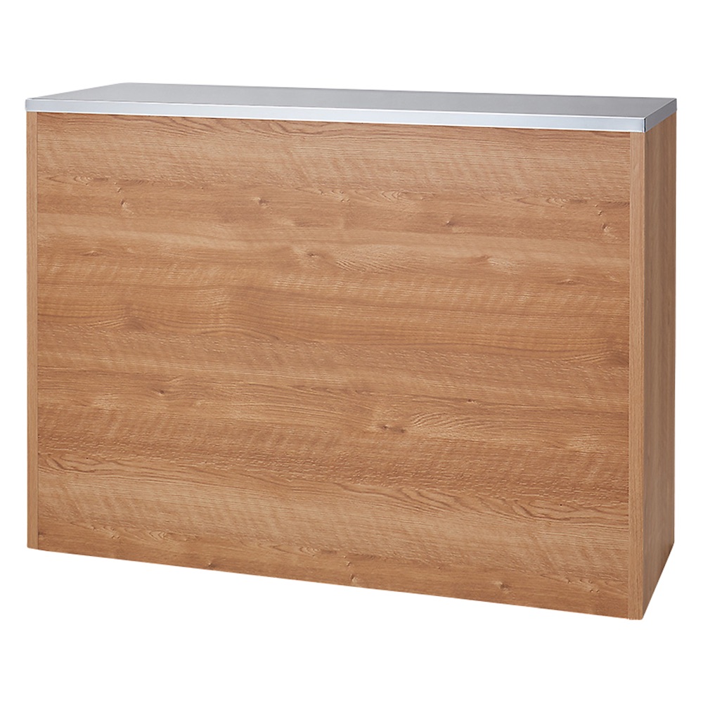 ステンレス天板のデザイン性の高いおしゃれなキッチンカウンター。前面の素材は水やすり傷などに強く光沢の美しいポリエステル化粧合板を使用しています。