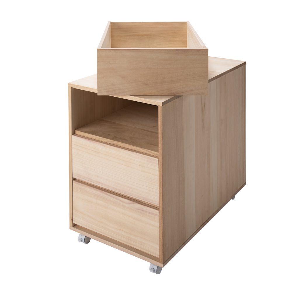 取り外せる引き出しにたとう紙もすっきり 引き出しは簡単に取り外せ、衣類の入れ替えに便利。幅67cmまでのたとう紙に対応。 (※写真は幅75cmタイプです)