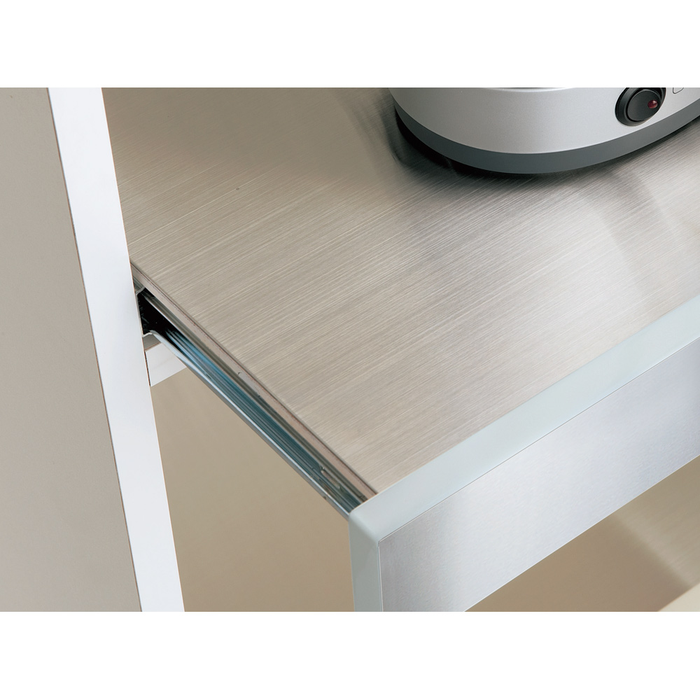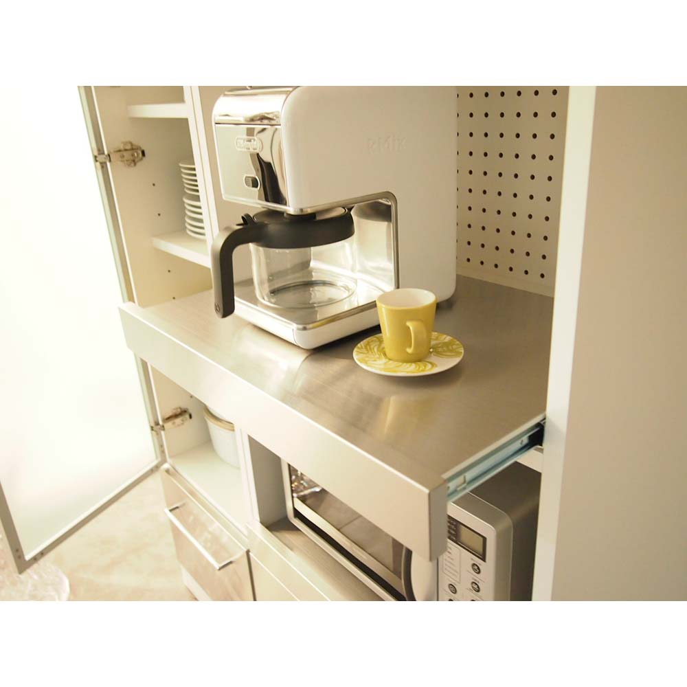 ステンレススライドテーブル スライドテーブル天板は熱に強いステンレス。家電の使用時には引き出して使えます。