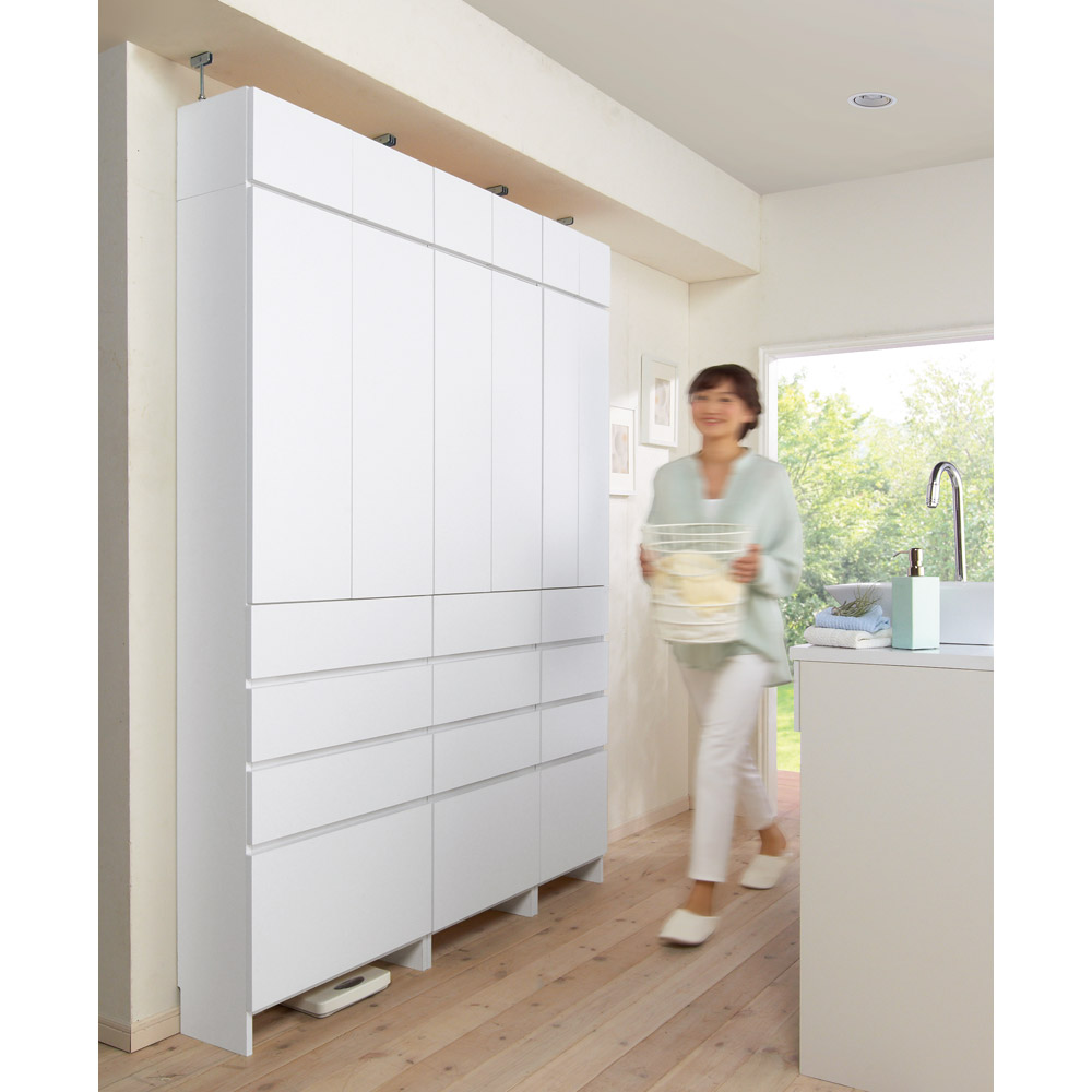 梁をよけて天井まで収納たっぷり。 ※写真は上置き小(高さ20cm)との組合せです。 ※左から幅60cmタイプ、50cmタイプ、40cmタイプです。