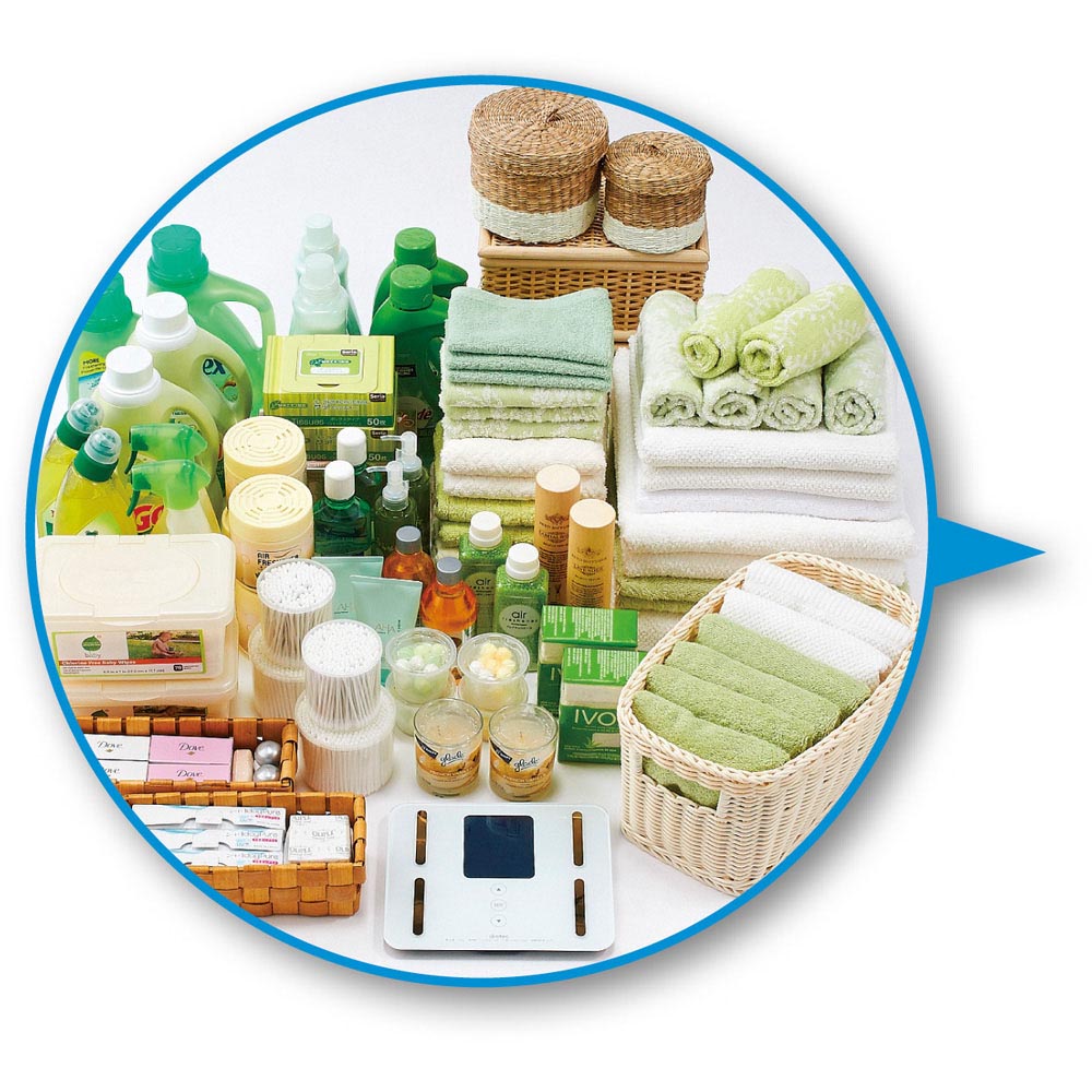 コーディネート例 狭い洗面所や脱衣所に置ける、見た目すっきりの薄型&天井突っ張りタイプ。