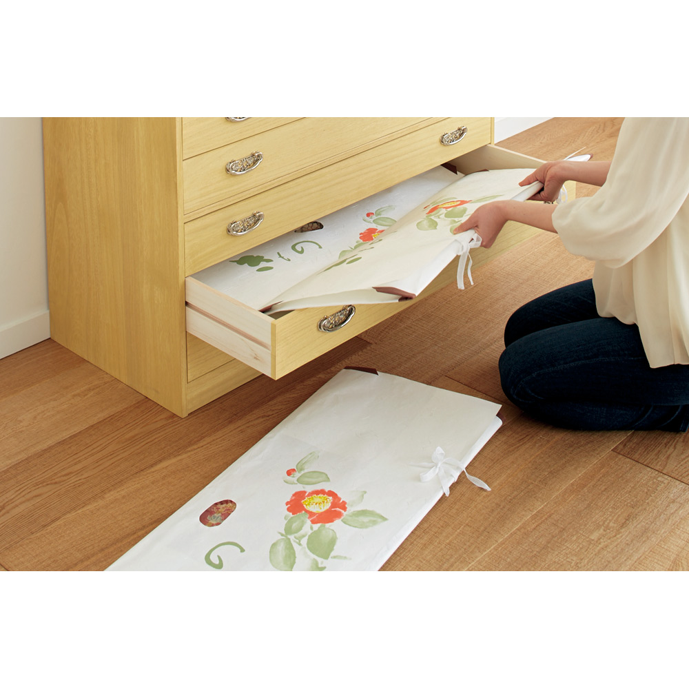 たとう紙をスッキリ収納。引き出し1段あたり、たとう紙が3枚入ります。