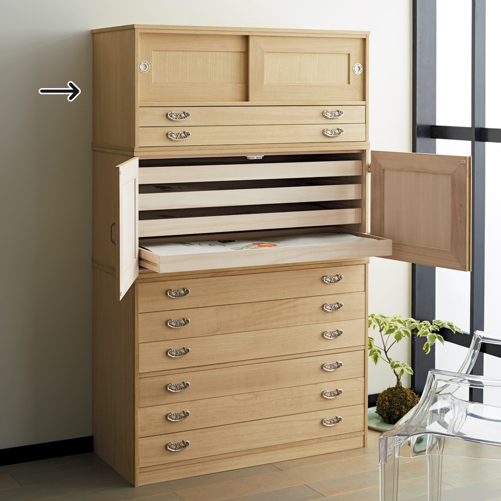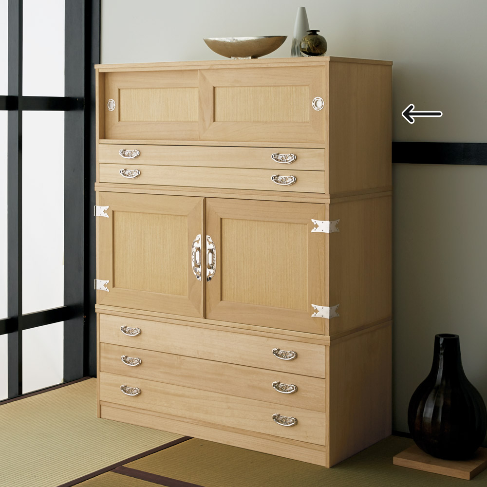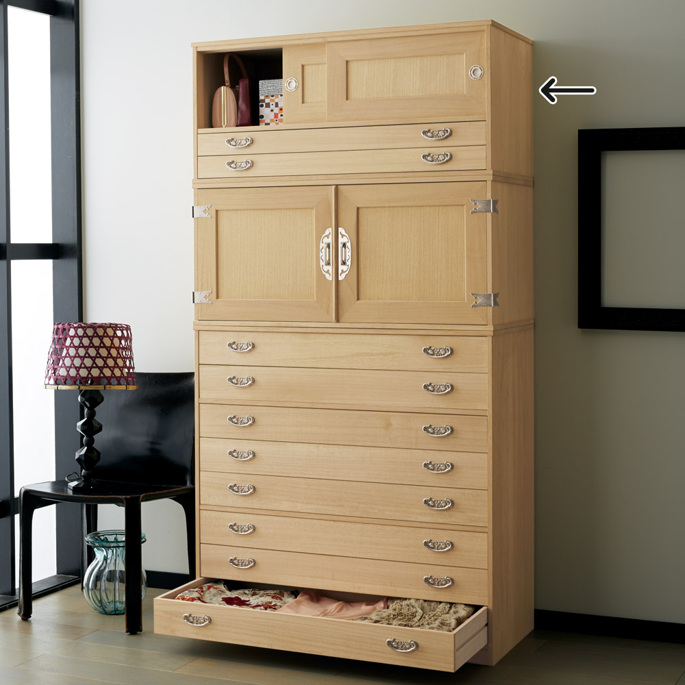 ≪組合せ例≫ 写真は上台扉タイプ、8段チェストとの組み合わせ例です。 ※お届けは上台引き戸タイプのみです。 ※引戸金具が変更になりました。アップ写真を参照ください。