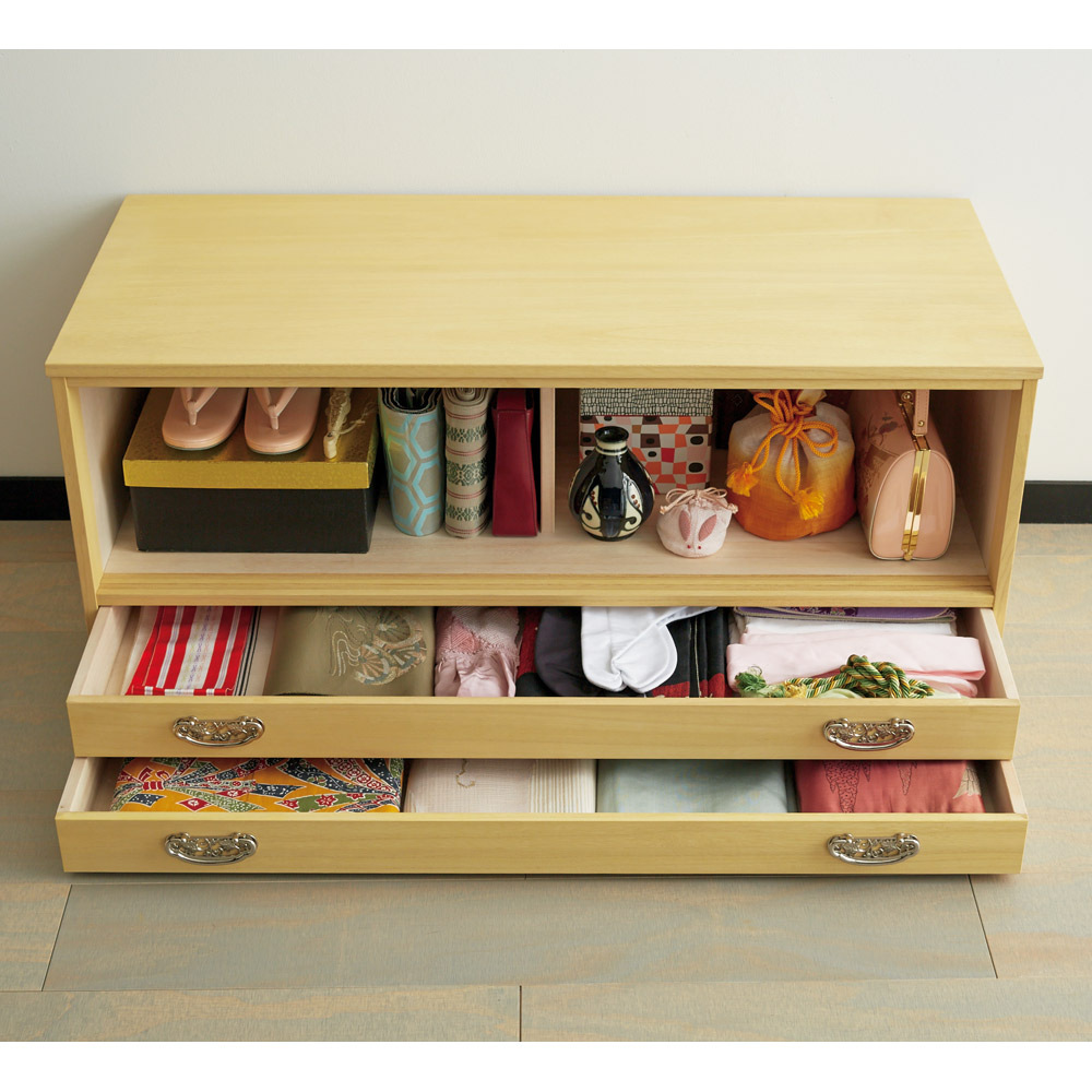収納例(扉外した状態で)上置きには、バッグや帯揚げ・帯締め・帯留めなどの和装小物を整理しながら収納できます。