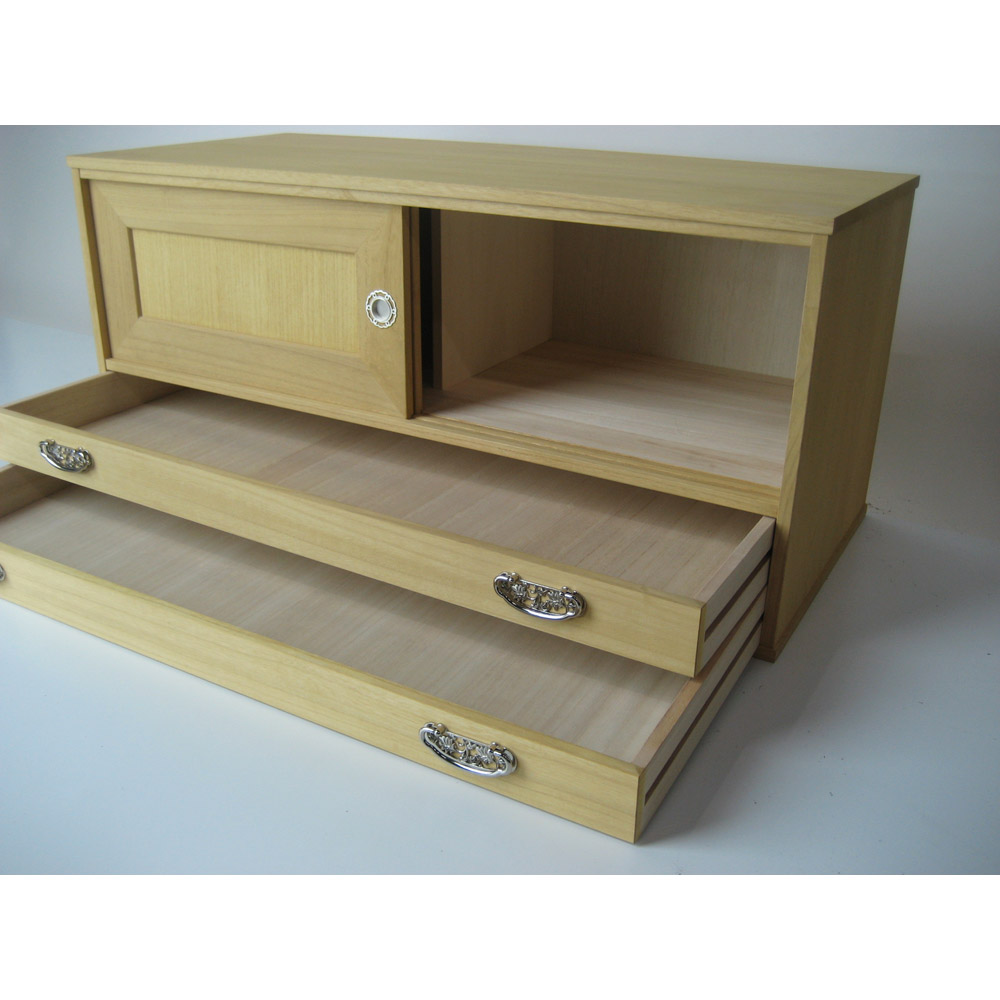 ≪組合せ例≫ 写真は上台扉タイプ、3段チェストとの組み合わせ例です。 ※お届けは上台引き戸タイプのみです。 ※引戸金具が変更になりました。アップ写真を参照ください。