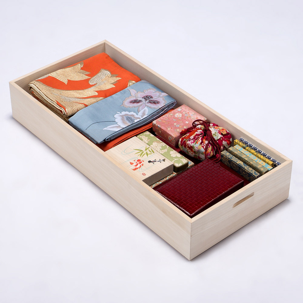 着物、和服、浴衣を大切にしまう総桐製の衣装箱。キャスター付きのワゴンタイプの衣類収納家具。お求めやすく、段数・深さも多様なタイプを取り揃えました。幅87cmのたとう紙にピッタリな幅91cmタイプ。本物志向の方へお届けしい総桐の衣類収納ケース。国内の専門工場で、桐職人が一点一点丁寧に作り上げています。大切な衣類はもちろん着物収納としても優れた商品です。調湿機能に優れた桐材は衣類や着物の収納に最適。着物やカシミヤ等、大切な衣類の保管には桐収納がおすすめ。桐は古くから日本の四季に適した材として、箪笥などによく使われている素材です。桐材は他の材と比べて調湿性が高いため、周りの湿度が高い時には湿気を吸収し、湿度が低い場合には、湿気をはき出してくれる効果があります。収納物に合わせて選べる全16シリーズ●設置場所や収納物に合わせて、前16シリーズ品をご用意●幅は91cmと95cmの2タイプからお選びいただけます●収納タイプは段数や深さ違いでそれぞれご用意しています・2段(深1・浅1)高さ33cm・3段(浅2・深1)高さ41cm・3段(浅1・深2)高さ48cm・4段(浅2・深2)高さ56cm・5段(浅2・深3)高さ70.5cm・2段(深2)高さ40cm・3段(深3)高さ55cm・4段(深4)高さ70cmかゆい所に手が届く、使いやすさのポイント●キャスター付きなので、クローゼットや狭い場所での移動もラクラク。●持ち手のくぼみがあるので、持ち運びにも便利です。●内寸幅がそれぞれ88cm・92.5cmあるので、大判のたとう紙も折らずに収納できます。●収納内部に金具等の出っ張りがない、着物や衣類を傷つけない構造です。