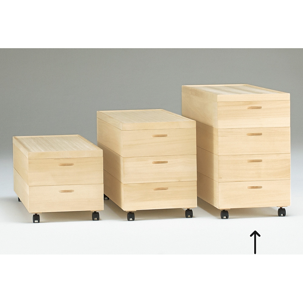 着物、和服、浴衣を大切にしまう総桐製の衣装箱。キャスター付きのワゴンタイプの衣類収納家具。お求めやすく、段数・深さも多様なタイプを取り揃えました。幅87cmのたとう紙にピッタリな幅91cmタイプ。本物志向の方へお届けしい総桐の衣類収納ケース。国内の専門工場で、桐職人が一点一点丁寧に作り上げています。大切な衣類はもちろん着物収納としても優れた商品です。調湿機能に優れた桐材は衣類や着物の収納に最適。着物やカシミヤ等、大切な衣類の保管には桐収納がおすすめ。桐は古くから日本の四季に適した材として、箪笥などによく使われている素材です。桐材は他の材と比べて調湿性が高いため、周りの湿度が高い時には湿気を吸収し、湿度が低い場合には、湿気をはき出してくれる効果があります。収納物に合わせて選べる全16シリーズ●設置場所や収納物に合わせて、前16シリーズ品をご用意●幅は91cmと95cmの2タイプからお選びいただけます●収納タイプは段数や深さ違いでそれぞれご用意しています・2段(深1・浅1)高さ33cm・3段(浅2・深1)高さ41cm・3段(浅1・深2)高さ48cm・4段(浅2・深2)高さ56cm・5段(浅2・深3)高さ70.5cm・2段(深2)高さ40cm・3段(深3)高さ55cm・4段(深4)高さ70cmかゆい所に手が届く、使いやすさのポイント●キャスター付きなので、クローゼットや狭い場所での移動もラクラク。●持ち手のくぼみがあるので、持ち運びにも便利です。●内寸幅がそれぞれ88cm・92.5cmあるので、大判のたとう紙も折らずに収納できます。●収納内部に金具等の出っ張りがない、着物や衣類を傷つけない構造です。