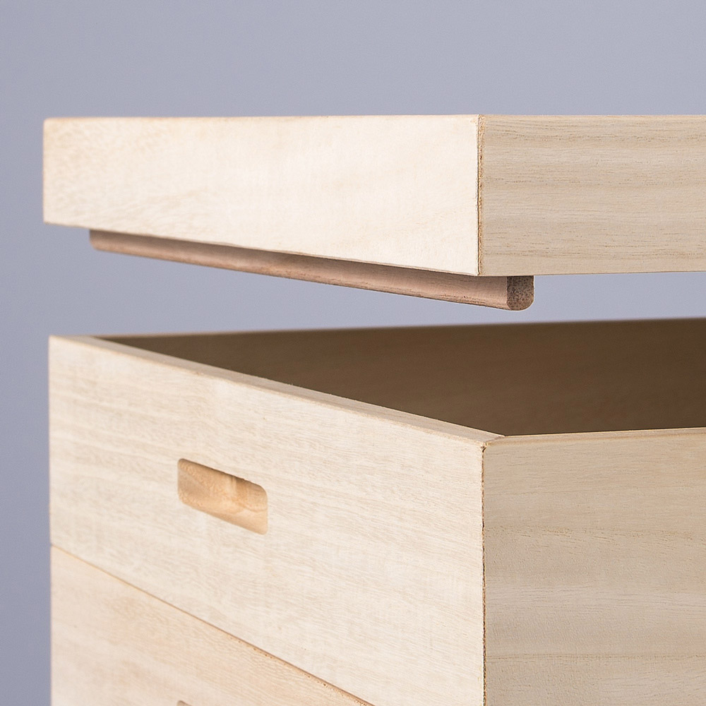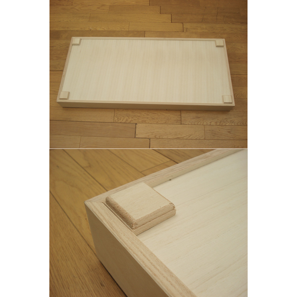 収納部の裏側。この角材によって上下段がしっかりかみ合い、ずれることを防ぎます。