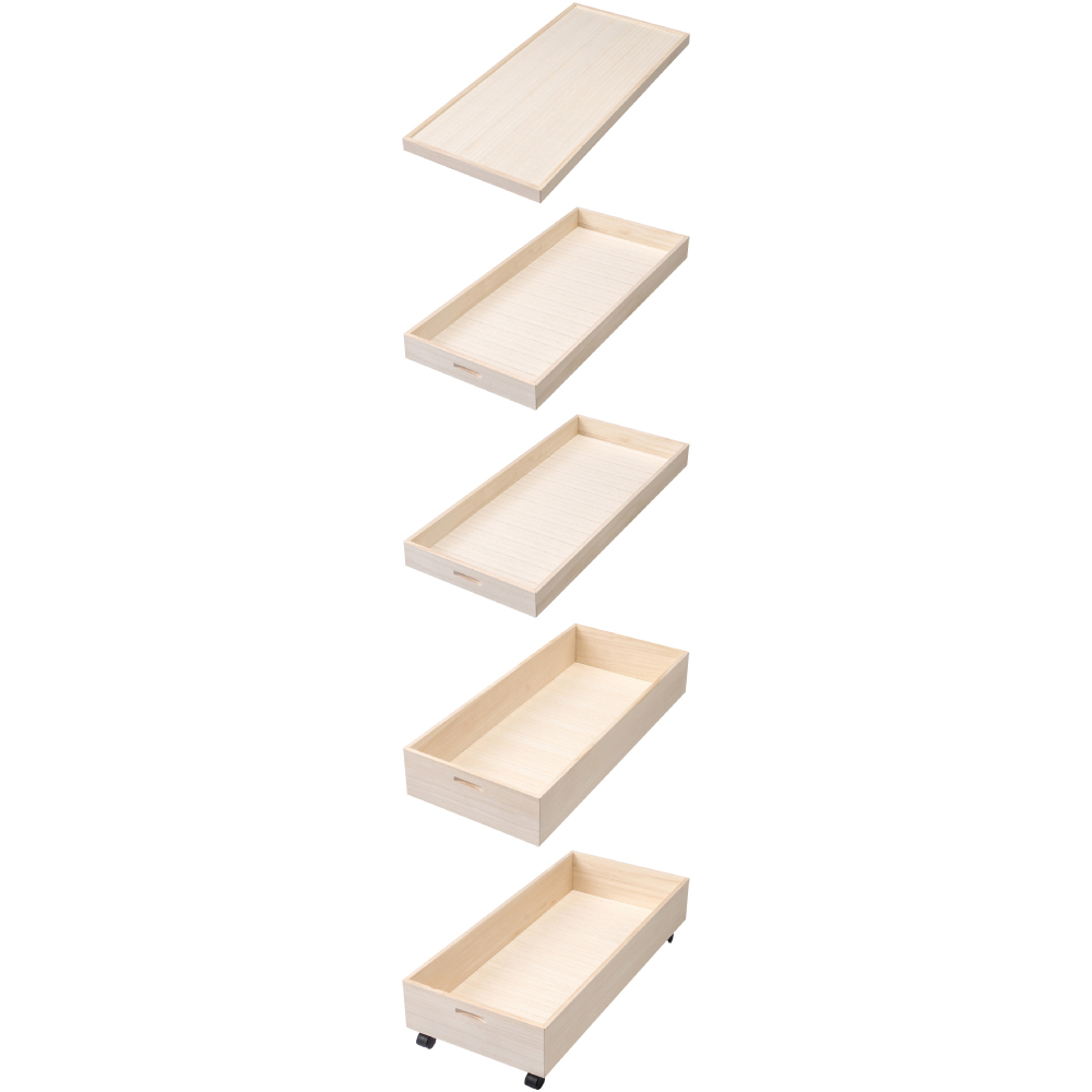 構造:フタ+浅収納×2+深収納+キャスター付き深収納