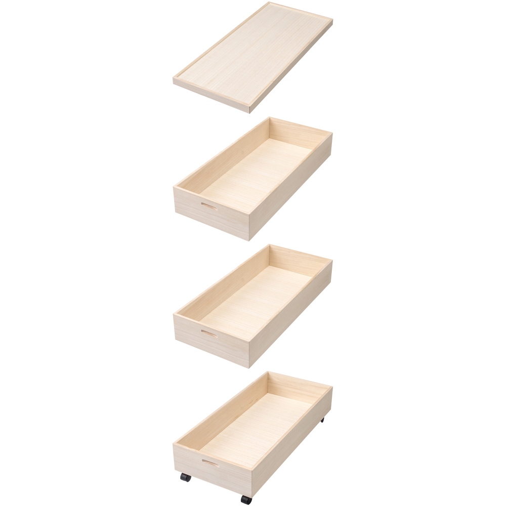 着物、和服、浴衣を大切にしまう総桐製の衣装箱。キャスター付きのワゴンタイプの衣類収納家具。お求めやすく、段数・深さも多様なタイプを取り揃えました。幅90cmのたとう紙も収まる幅95.5cmタイプ。本物志向の方へお届けしい総桐の衣類収納ケース。国内の専門工場で、桐職人が一点一点丁寧に作り上げています。大切な衣類はもちろん着物収納としても優れた商品です。調湿機能に優れた桐材は衣類や着物の収納に最適。着物やカシミヤ等、大切な衣類の保管には桐収納がおすすめ。桐は古くから日本の四季に適した材として、箪笥などによく使われている素材です。桐材は他の材と比べて調湿性が高いため、周りの湿度が高い時には湿気を吸収し、湿度が低い場合には、湿気をはき出してくれる効果があります。収納物に合わせて選べる全16シリーズ●設置場所や収納物に合わせて、前16シリーズ品をご用意●幅は91cmと95cmの2タイプからお選びいただけます●収納タイプは段数や深さ違いでそれぞれご用意しています・2段(深1・浅1)高さ33cm・3段(浅2・深1)高さ41cm・3段(浅1・深2)高さ48cm・4段(浅2・深2)高さ56cm・5段(浅2・深3)高さ70.5cm・2段(深2)高さ40cm・3段(深3)高さ55cm・4段(深4)高さ70cmかゆい所に手が届く、使いやすさのポイント●キャスター付きなので、クローゼットや狭い場所での移動もラクラク。●持ち手のくぼみがあるので、持ち運びにも便利です。●内寸幅がそれぞれ88cm・92.5cmあるので、大判のたとう紙も折らずに収納できます。●収納内部に金具等の出っ張りがない、着物や衣類を傷つけない構造です。