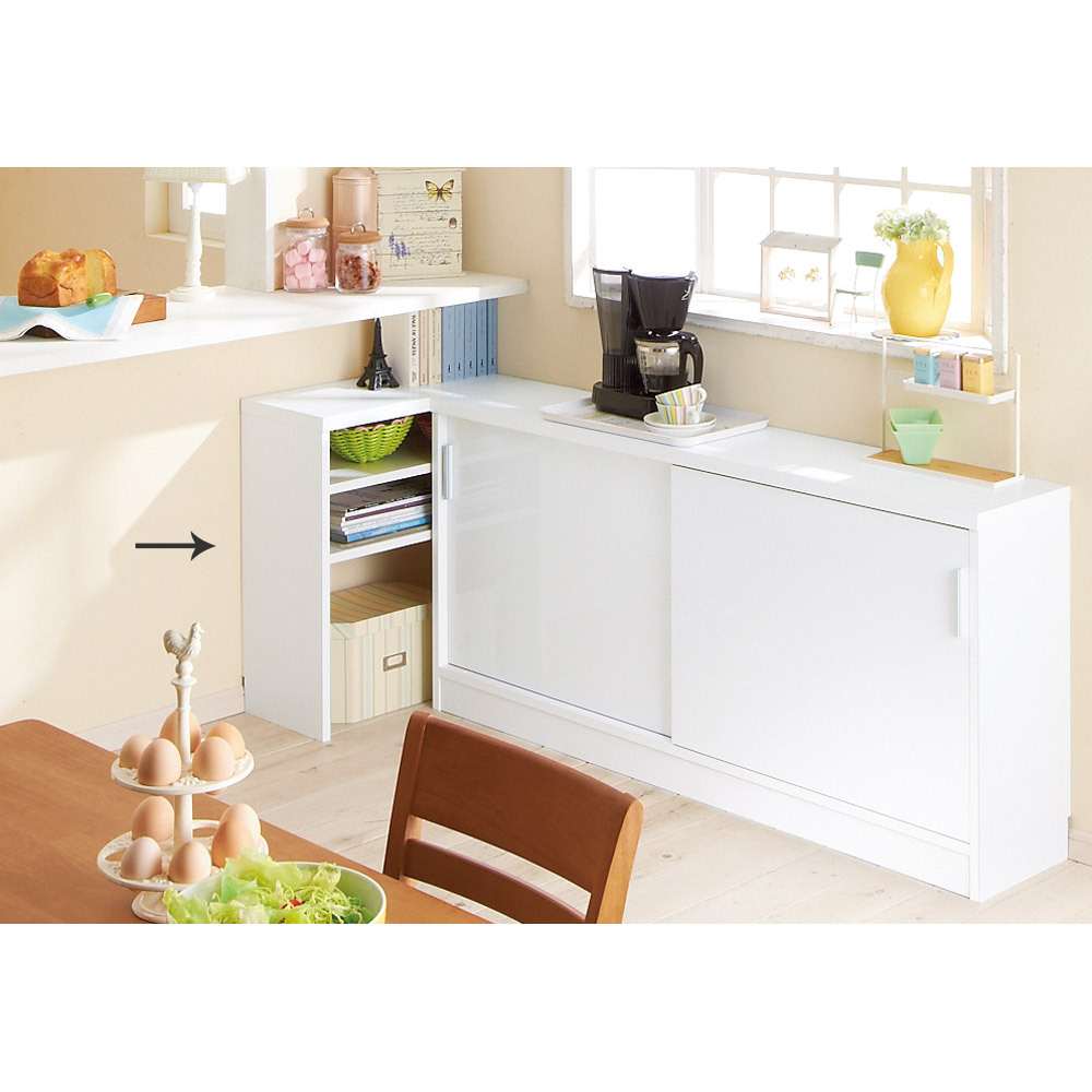 高さ70cmのちょっと低めのカウンター下収納庫。一般的なダイニングテーブルの高さで、テーブルの延長上でフラットにお使い頂けます。前面には光沢が美しく、キズ・汚れに強い素材を使用したマルチ収納庫です。使用例:奥行29.5高さ70cmタイプ 左から引き出し、収納庫(幅150cm)、オープンラックサイズバリエーションが豊富なカウンター下収納高さ、奥行、幅が選べる「カウンター下収納庫シリーズ」。薄型の引き出し・オープンラック・収納庫を組み合わせて、デッドスペースを収納に活用できます。前面には光沢が美しく、キズ・汚れに強い素材を使用。お部屋に清潔感をもたらしてくれるマルチ収納です。左から引き出し(奥行23高さ70cm )、オープンラック(奥行29.5高さ87cm)、収納庫(奥行29.5高さ100cm)カウンター下収納庫シリーズ引き出し(幅44.5cm)・オープンラック(幅59.5cm)・引き戸の収納庫(幅90・120・150cm)からお選びください。奥行は23cm・29.5cmの薄型設計。高さは、70cm・87cm・100cmのちょっと低めから選べます。オープンラック 幅59.5cm(お届け商品)リビングまわりの小物や家電、本の収納に便利なラック。バックボードは床から30cmの位置までの高さなので、ラック背面の壁にあるコンセントをふさぐことなく使えます。奥行:23cm、29.5cmの2タイプ高さ:70cm、87cm、100cmの3タイプ使用例:奥行23高さ100cmタイプ 左から引き出し、収納庫(幅120cm)、オープンラックカウンター下にピッタリな薄型スリムな薄型収納で、キッチンカウンター下のデッドスペースにもピッタリ収まります。引き出しや収納庫と組み合わせ、食器棚・キッチンストッカーとしてもおすすめ。薄型だから設置場所を選ばず、窓下や廊下、リビング、寝室などでも活躍。本棚や雑誌、CD、DVDの収納にも。使用例:奥行29.5高さ70cmタイプ 左からオープンラック、収納庫(幅150cm)L字型に設置してスペースを有効活用収納庫と組み合わせ、L字になるように置くことも可能です。リビングの窓下に設置すれば、FAX台や電話台、ローボード・窓下収納としても活躍。リビングに散らばりがちな小物や生活雑貨をまとめて整理できます。左:奥行29.5高さ70cmタイプ オープンラック家電を置いてコンセントを使える設計棚板とバックボードの間にすき間があるので、ラックに置いた家電のコードを通して、コンセントに挿すことができます。高さ調節、取り外し可能な棚板可動棚板2枚付き。棚板は3cm間隔で高さが調節できます。また、棚板を1枚取り外してダストボックスの定位置にしても便利です。水に強い素材だからお手入れ簡単前面は、美しさと機能性を兼ね備えた光沢ポリエステル化粧板。光沢のあるおしゃれな見た目はもちろん、汚れても拭き取り掃除が簡単な素材です。幅木よけ(8×1cm)つき壁にぴったり設置できるよう、幅木よけがついています。使用例:奥行29.5高さ87cmタイプ 左から引き出し、収納庫(幅90cm、幅120cm) 国産のキッチン・リビング収納素材はJIS規格の定める安全性の高いF☆☆☆☆を使用しました。