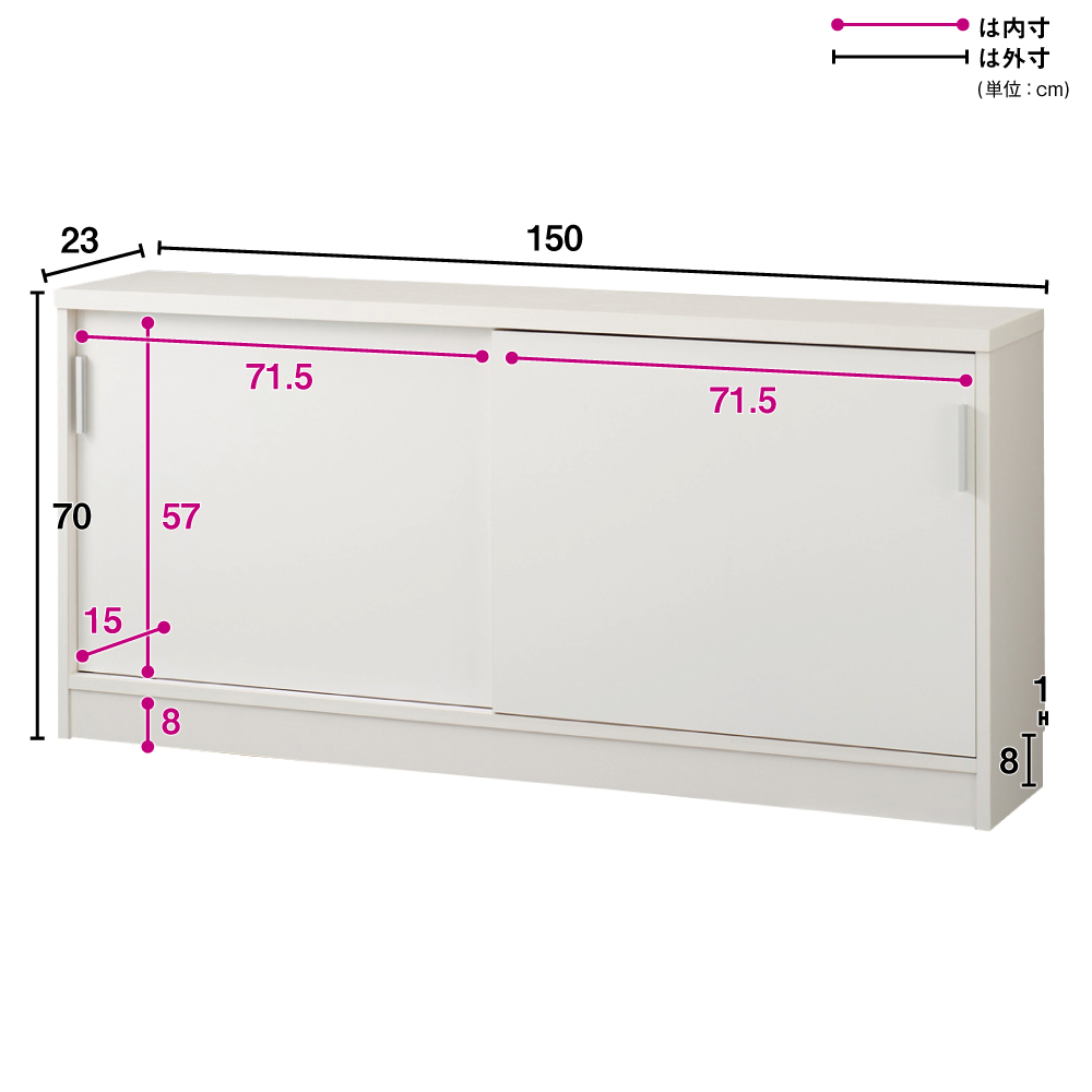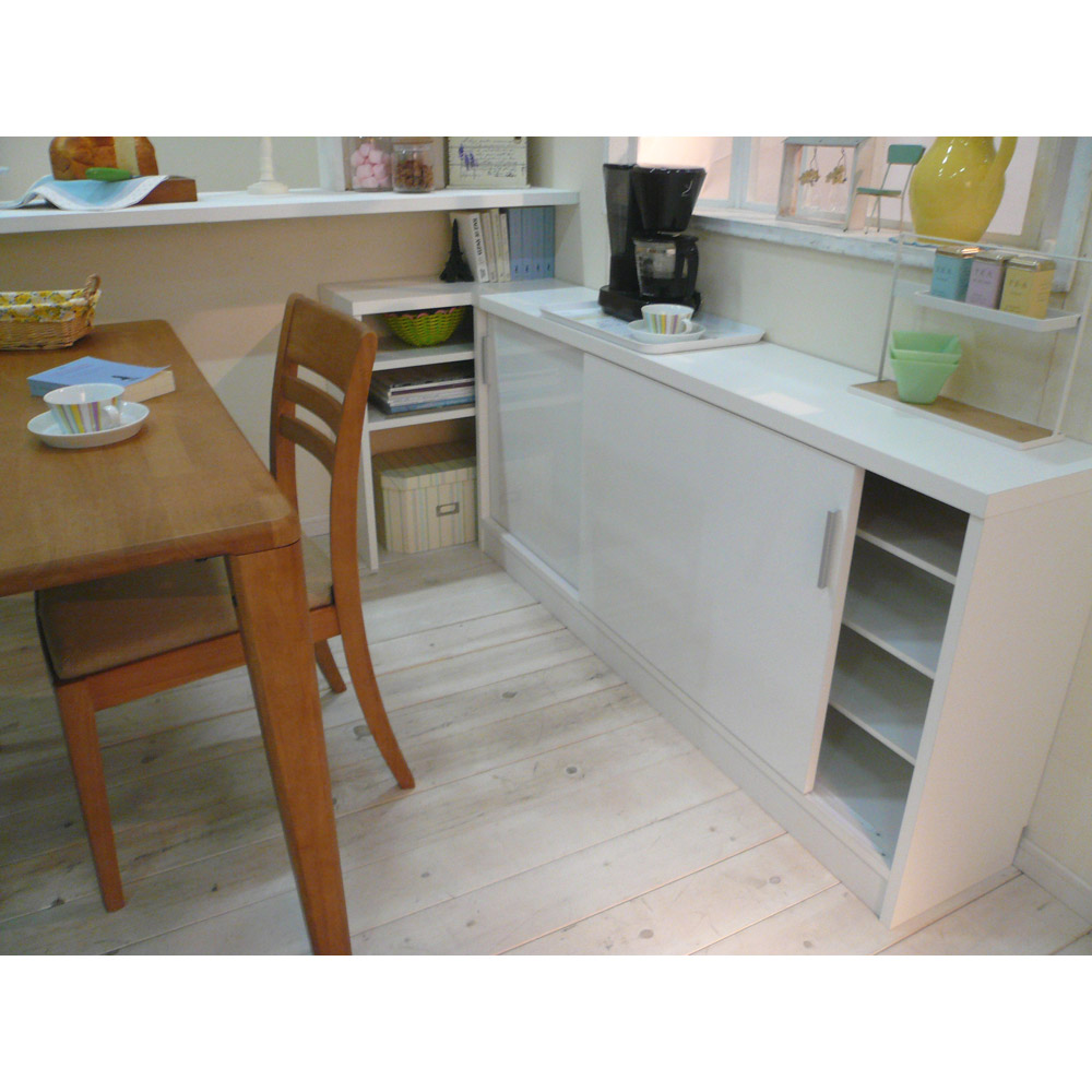 高さ70cmのちょっと低めのカウンター下収納庫。一般的なダイニングテーブルの高さで、テーブルの延長上でフラットにお使い頂けます。前面には光沢が美しく、キズ・汚れに強い素材を使用したマルチ収納庫です。使用例:奥行29.5高さ87cmタイプ 左から引き出し、収納庫(幅90cm、幅120cm)サイズバリエーションが豊富なカウンター下収納高さ、奥行、幅が選べる「カウンター下収納庫シリーズ」。薄型の引き出し・オープンラック・収納庫を組み合わせて、デッドスペースを収納に活用できます。前面には光沢が美しく、キズ・汚れに強い素材を使用。お部屋に清潔感をもたらしてくれるマルチ収納庫です。左から引き出し(奥行23高さ70cm )、オープンラック(奥行29.5高さ70cm)、収納庫(奥行29.5高さ100cm)カウンター下収納庫シリーズ引き出し(幅44.5cm)・オープンラック(幅59.5cm)・引き戸の収納庫(幅90・120・150cm)からお選びください。奥行29.5高さ87cmタイプ引き戸式収納庫(お届け商品)幅:90cm、120cm、150cm奥行:23cm、29.5cm高さ:70cm、87cm、100cm(幅150cmタイプは高さ70cm、87cmのみ)開閉スペース不要の引き戸式。狭いキッチンでも使いやすく、限られた空間でもたっぷり収納できます。完成品でのお届けなので面倒な組立不要。取っ手の取付のみで、ご使用前の準備は簡単。届いたその日から使用できます。使用例:奥行23高さ100cmタイプ 左から引き出し、収納庫(幅120cm)、オープンラックカウンター下にピッタリな薄型で空間を有効活用スリムな薄型収納で、キッチンカウンター下のデッドスペースにもピッタリ収まります。薄型でも収納力たっぷりだから、食器棚・キッチンストッカーとしてもおすすめ。中皿や小鉢、買い置きの缶詰や瓶詰をまとめて収納できる隙間収納です。使用例:奥行29.5高さ70cmタイプ 左からオープンラック、収納庫(幅150cm)リビング収納、書棚としても薄型だから設置場所を選ばず、窓下や廊下、リビング、寝室などにもおすすめ。本棚や雑誌、CD、DVDの収納にぴったり。リビングの窓下に設置すれば、FAX台や電話台、ローボード・窓下収納としても活躍。リビングに散らばりがちな小物や生活雑貨をまとめて整理できます。引き戸式だから省スペースで開閉できるスライド引き戸の扉なので、収納庫の前にテーブルを置いても扉の開閉ができます。物の出し入れもスムーズ。高さ調節可能な棚板可動棚板6枚付き。高さは3cm間隔で調節可能。収納物に合わせて棚板をセットすれば、無駄なく効率的にスペースを活用。水に強い素材だからお手入れ簡単前面は、美しさと機能性を兼ね備えた光沢ポリエステル化粧板。汚れても拭き取り掃除が簡単な素材です。幅木よけ(8×1cm)つき壁にぴったり設置できるよう、幅木よけがついています。使用例:奥行29.5高さ70cmタイプ 左から引き出し、収納庫(幅150cm)、オープンラック信頼の職人技が光る国産のキッチン・リビング収納熟練の家具職人がひとつずつ丁寧に仕上げた日本製。素材はJIS規格の定める安全性の高いF☆☆☆☆を使用しました。