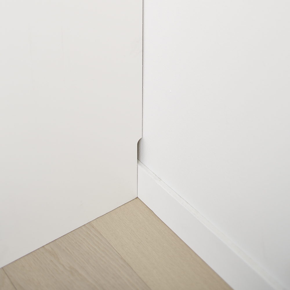 幅木よけカットを施してあるので、壁に隙間なくぴったり設置ができます。