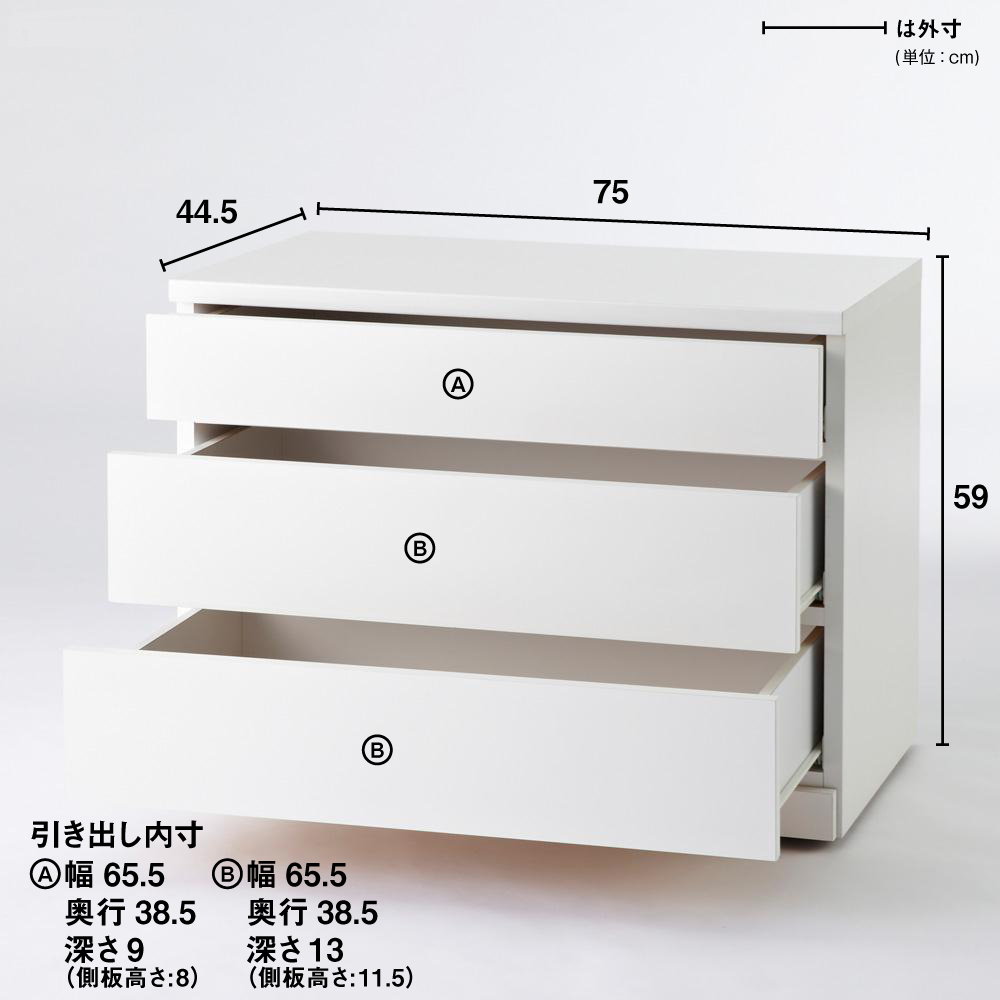 こちらの商品は【幅75cm・3段タイプ】です。