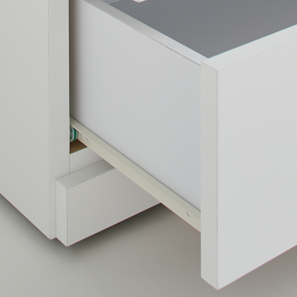 ホワイトの前面には光沢感がある化粧合板を使用しています。