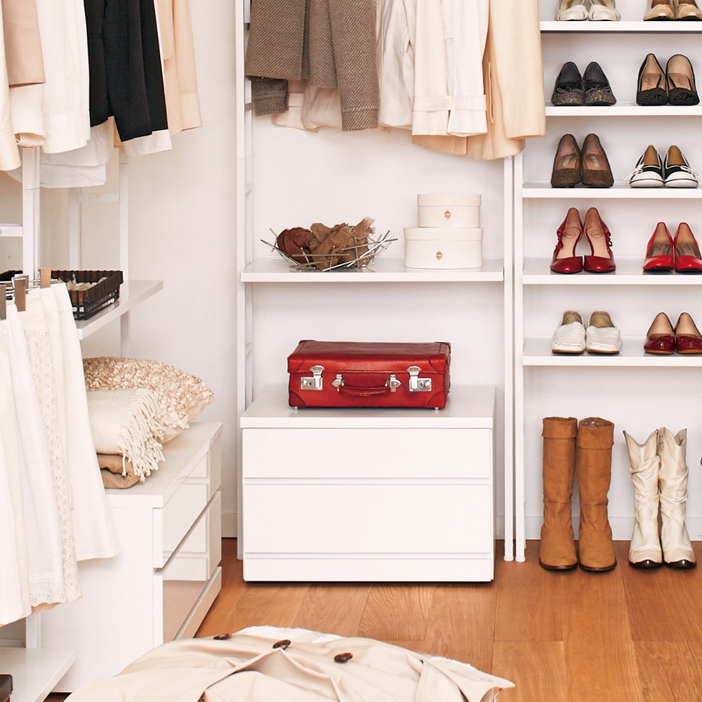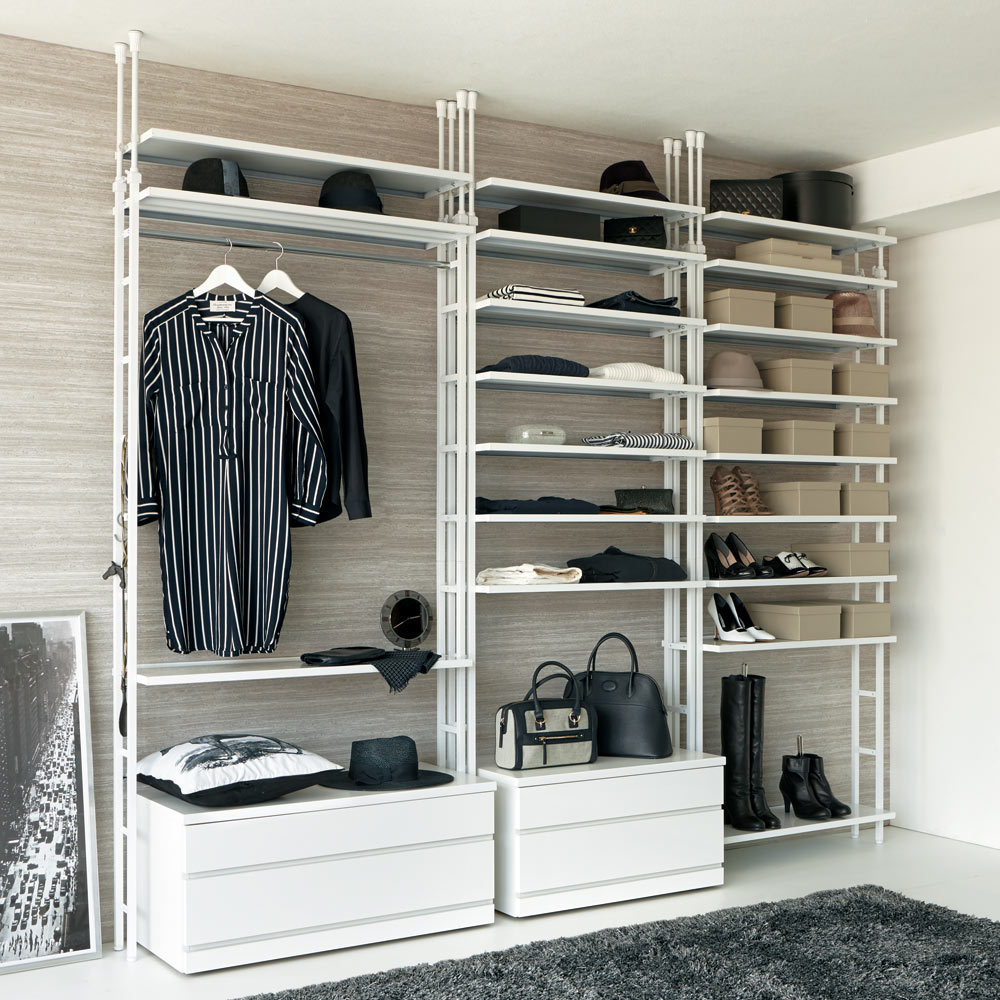 コーディネート例 ラダー状のモダンデザインスリムでスマートなクローゼットが完成