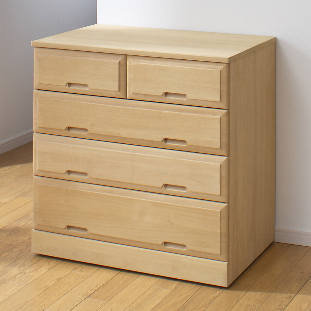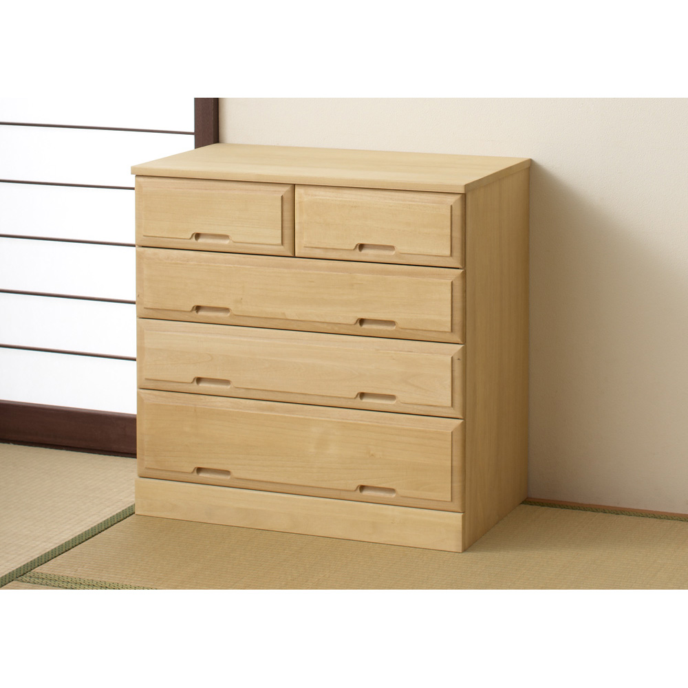 洋室にも調和する洋風デザインの総桐チェスト。着物をたとう紙に入れて収納できる幅100cmと洋服収納向けの幅75cmの2サイズに各3〜7段の合計10種類。しまう物、場所によって選べる衣類収納タンスです。日本の伝統とモダンデザインが融合した総桐チェスト●素材は細部にまでこだわった総桐仕様。背面にも桐材を使用しています●桐本来の美しさを活かしした伝統的なとのこ仕上げも魅力●幅は75cm・100cm。高さは3段〜7段までご用意。用途に応じて選んでいただけます。●総桐ながらモダンなデザインなので、どんなお部屋にもマッチします。洋室にも和室にもおすすめです随所に光る使いやすさのポイント●引き出し内部も衣類をしまうのにぴったりな総桐仕様。大切な衣類の収納にお使いください●引き出しは取り外し可能なので入れ替えも可能です。衣替えもあっという間に完成します●隠しキャスター付きなので、お掃除の時などの移動も楽々。クローゼットでの使用もおすすめ一つ一つ丹精こめて作られた日本製です●熟練の職人が細部まで丁寧に仕上げた日本製です。●発売以来、ご好評いただいている人気の総桐チェストです。●完成品でお届けしますので、届いたらすぐにお使いいただけます。〜お客様から続々と喜びの声が届いています●チェストはとっても綺麗な白い桐ですね。値段の割には良いでしょう。もう少し大きいサイズがあればいいなぁと思います。本当は150cmくらいのタンスがよかった。でも、これにはなかったから。だからぜひもう少し高さのあるものを作っていただきたい。底板もちゃんとしているからとってもいいと思う。桐って防虫効果もあるし、湿気の調節もしてくれる。中の衣類をちゃんと守ってくれるから本当にお勧め。(幅75 5段タイプを購入 千葉県)●和室にも洋室にも合うデザインでサイズも丁度良く気に入りました。桐なので重量も軽いし下にキャスターがあり、模様替えと時にも役立ちそう。材質的にもやわらかいので、汚れや傷には気を付けないといけなさそうです。予定していたものも収納できましたが、小引きだしには小物類中心になりました。使用していた家具の引き取りは大変助かりました。(幅100 5段タイプを購入 千葉県)●マンション押入れ下段サイズにぴったり。国産品である点を気に入り購入した。たとう紙に合うサイズであり、着物収納に適している。小引き出しには、帯締めや帯揚げといった小物類の収納に適している。簡単に移動できることもメリット。購入してよかった。(幅100 3段タイプを購入 大阪府)