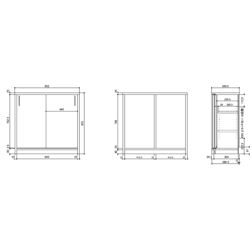 棚板は3cmピッチで可動します。
