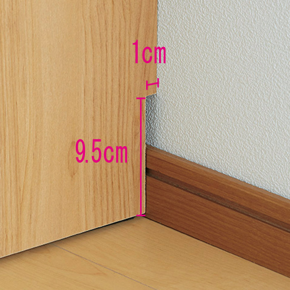 幅木よけで壁にぴったり設置可能。